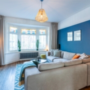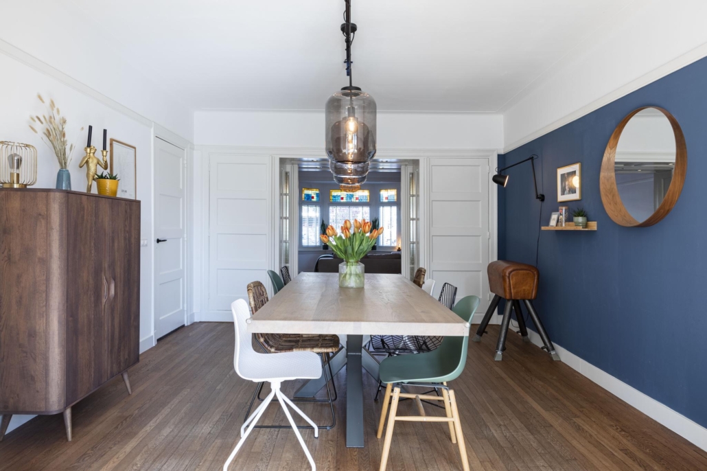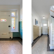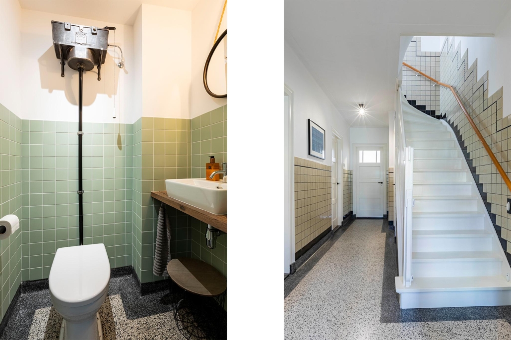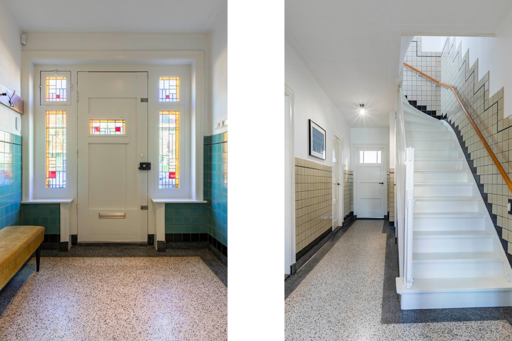 – Moderne woning gecombineerd met originele jaren 30 elememten zoals terrazzovloeren, glas-in-lood ramen;