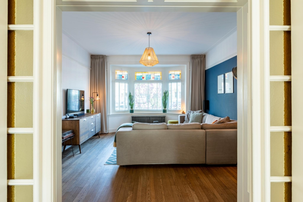 ‘From the moment we first walked in, we fell in love with this house. The fully preserved authentic elements, the history that this house exudes, the (surprising) space that this house has to offer and the great location in the center close to the parks. During the renovation of our house we tried to do it as much justice as possible. We have enjoyed living here, but it is time to transfer it to a new owner.’