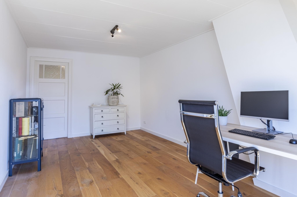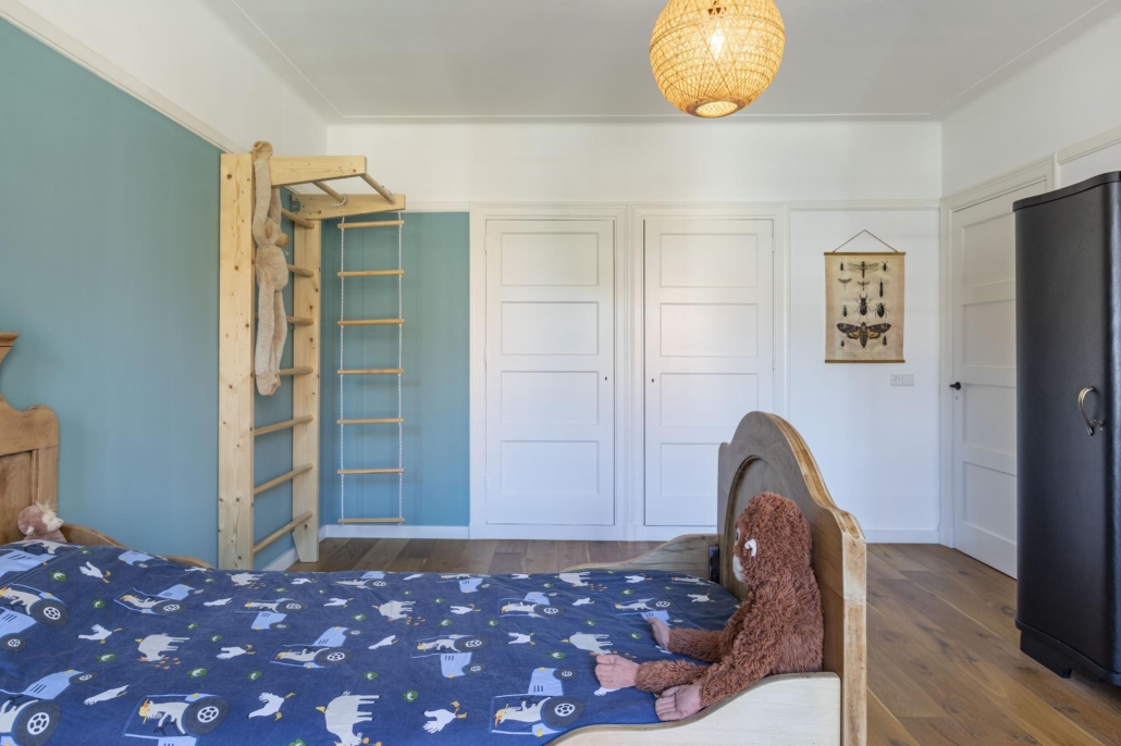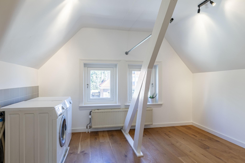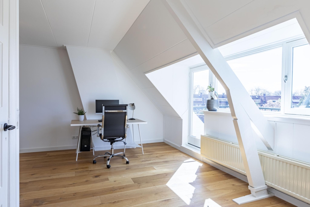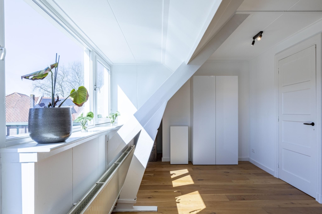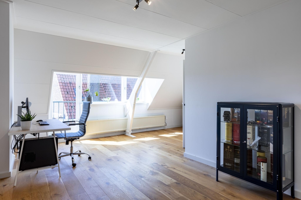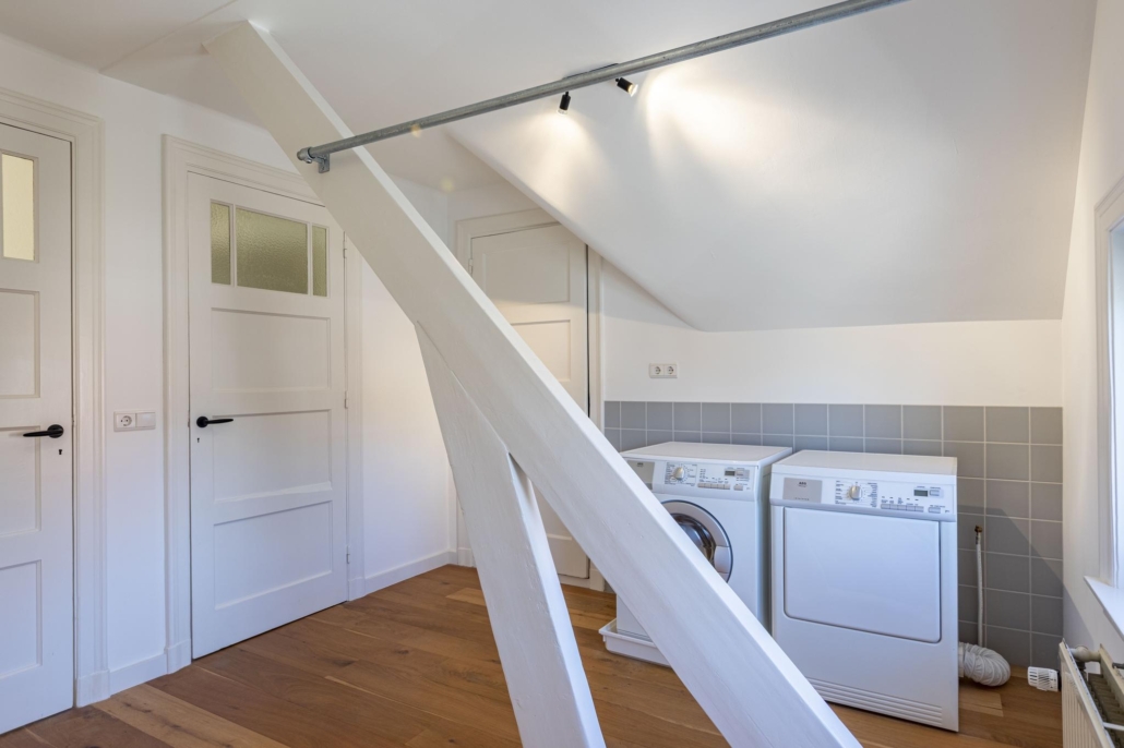 The second floor is accessible via a fixed staircase. The spacious landing gives access to two (bed)rooms. At the rear is a spacious bedroom with a wide dormer window. The connections for washing equipment are located in the 2nd room and the central heating boiler (2022) is located in a storage cupboard.
