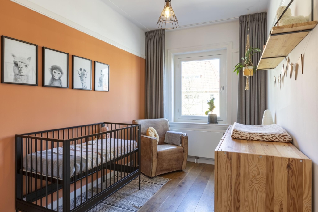 De tweede verdieping is bereikbaar middels een vaste trap. De ruime overloop geeft toegang tot twee (slaap)kamers. Aan de achterzijde een ruime slaapkamer met een brede dakkapel. In de 2e kamer bevinden zich de aansluitingen t.b.v. was-apparatuur en is de c.v.-ketel (2022) opgesteld in een bergkast.