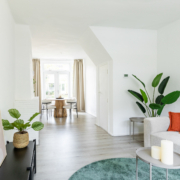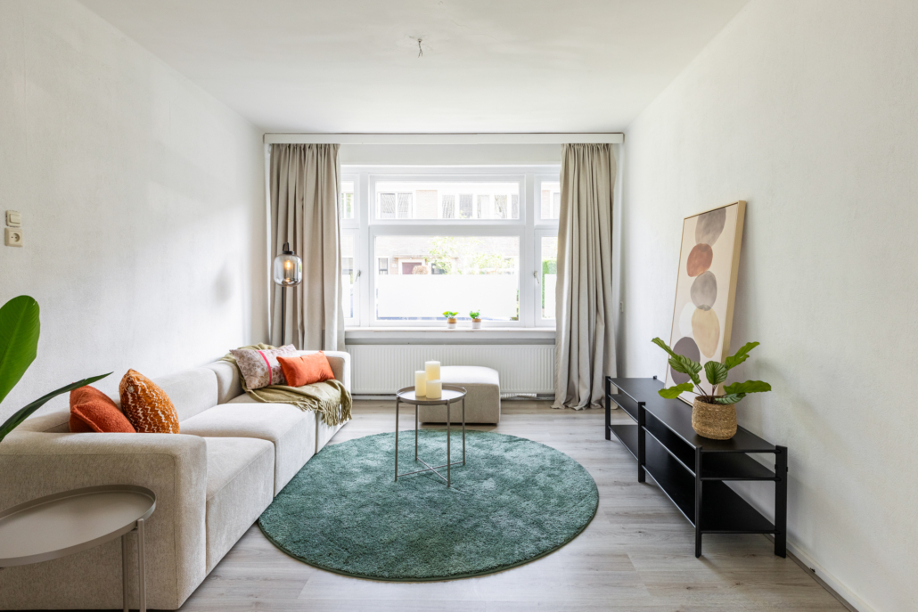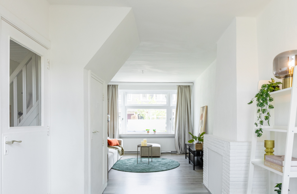 De woonkamer is heerlijk licht en voorzien van een groot raam aan de voorzijde met vrij uitzicht op de straat. Aan de achterzijde zorgen openslaande deuren voor een verbinding met het terras en de zonnige, diepe achtertuin.