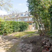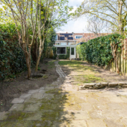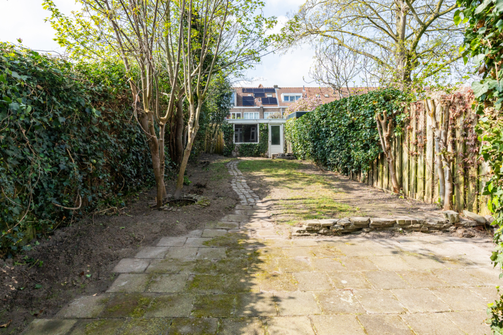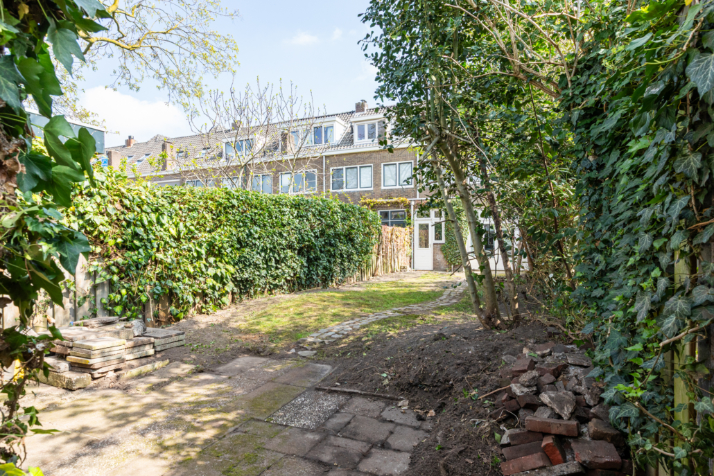 De diepe achtertuin is een absolute verrassing midden in Eindhoven: groen, zonnig en met veel privacy. Direct achter de woning ligt een terras, gevolgd door een ruim gazon en volwassen beplanting. Achterin de tuin bevindt zich een praktische berging en een achterom.