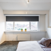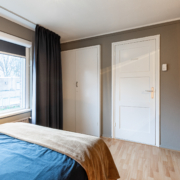 De overloop geeft toegang tot twee ruime slaapkamers, de moderne badkamer en een separate wasruimte. De slaapkamer aan de voorzijde is voorzien van een dubbele inbouwkast.