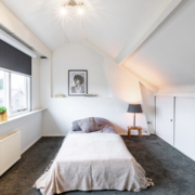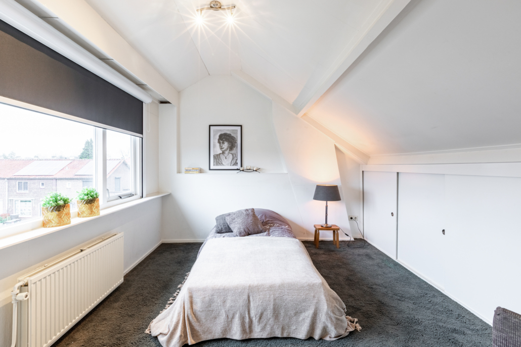 Op deze verdieping bevindt zich de derde slaapkamer: een ruime zolderkamer met dakkapel aan de achterzijde over de volle breedte en volop bergruimte onder de kap.