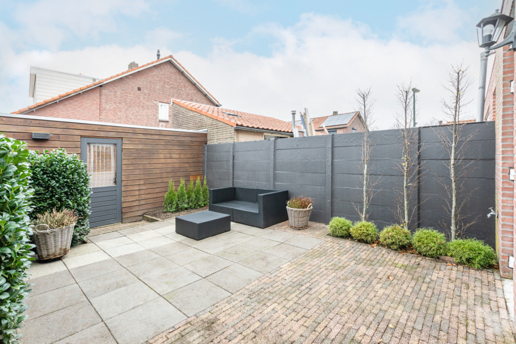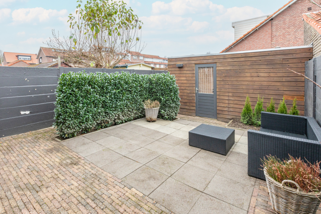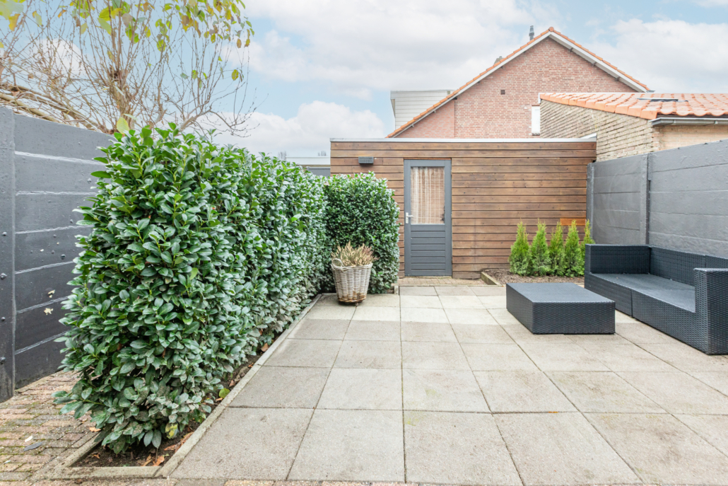 De achtertuin is onderhoudsvriendelijk en biedt veel privacy. Je kunt hier heerlijk genieten van je eigen buitenruimte, terwijl het levendige centrum van Veldhoven zich om de hoek bevindt. Via de achterom kun je eenvoudig je fiets in de berging plaatsen, die zich achter in de tuin bevindt.
