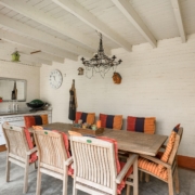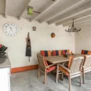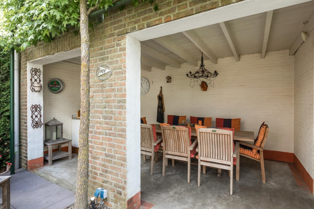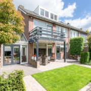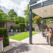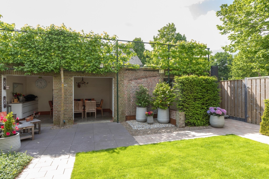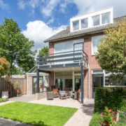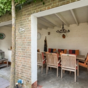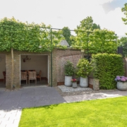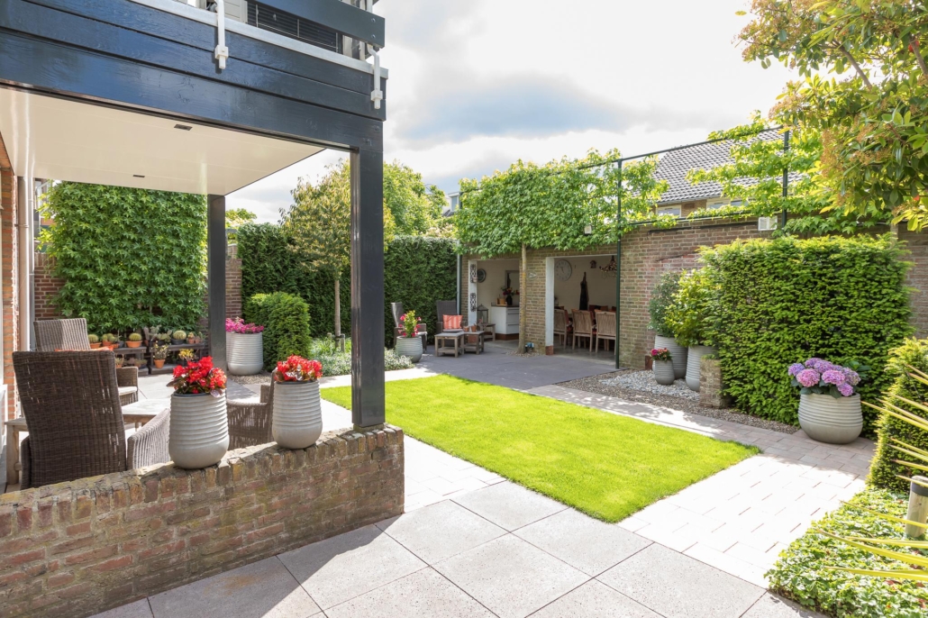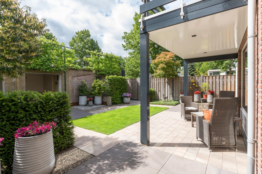 Zowel de voor- als achtertuin zijn onder architectuur aangelegd en dat voel je. (circa vier jaar geleden). De achtertuin is een groene oase met meerdere terrassen, volwassen beplantingen, veel privacy en een fijne mix van zon en schaduw. Of je nu in de zon wil ontbijten, met vrienden wilt borrelen of een boek wil lezen in de schaduw: het kan hier allemaal. Achterin de tuin is een tweede ‘zomerwoonkamer’ ontstaan onder de overkapping met handige vaste bergruimte. Een heerlijke plek om te ontspannen – zelfs als het wat later wordt.