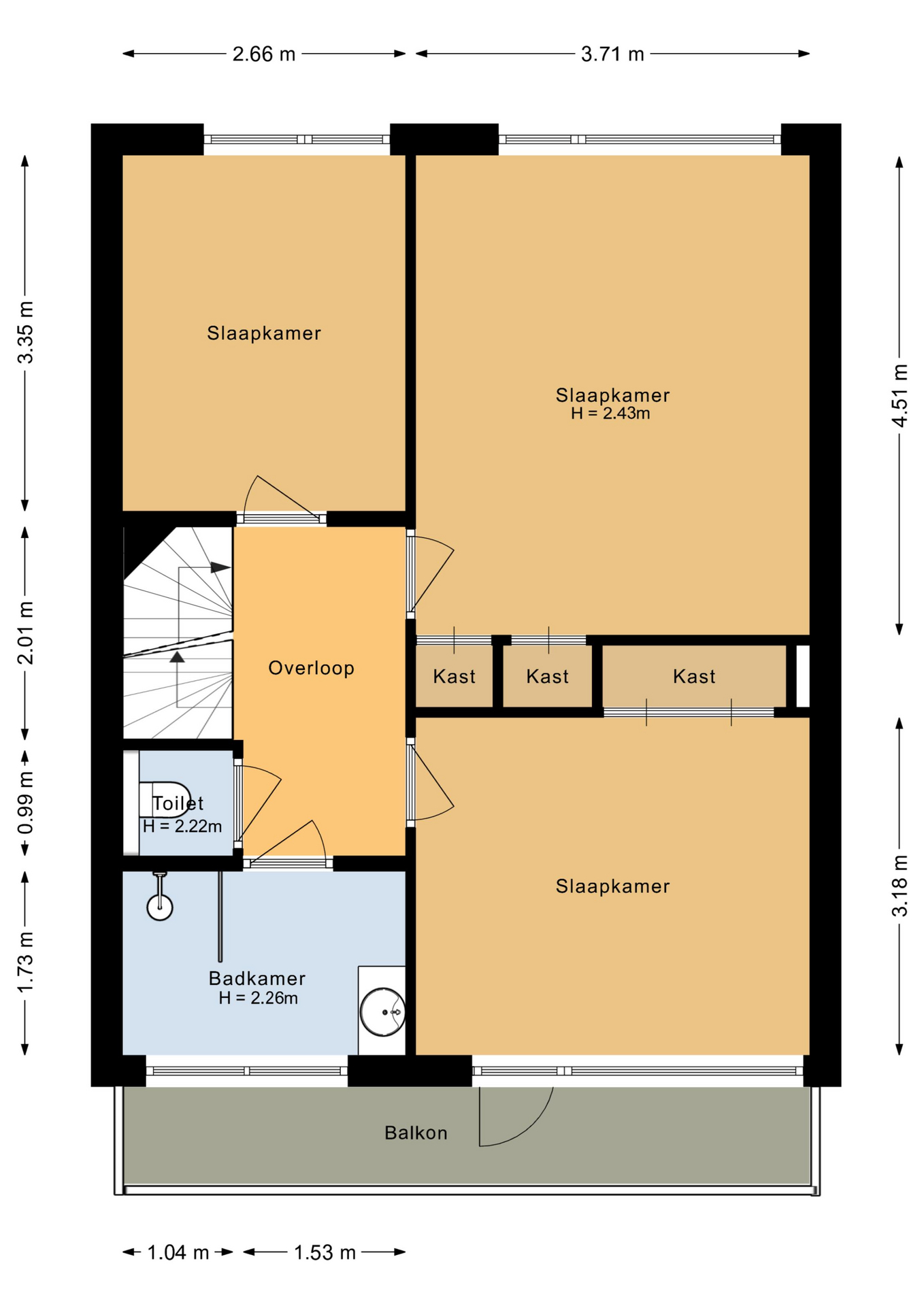 De woning is zorgvuldig professioneel ingemeten. De Meetinstructie is gebaseerd op de NEN2580. De Meetinstructie is bedoeld om een meer eenduidige manier van meten toe te passen voor het geven van een indicatie van de gebruiksoppervlakte. De Meetinstructie sluit verschillen in meetuitkomsten niet volledig uit, door bijvoorbeeld interpretatieverschillen, afrondingen of beperkingen bij het uitvoeren van de meting.