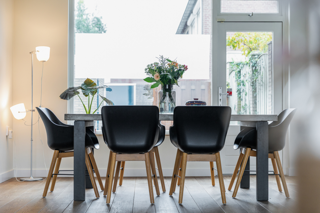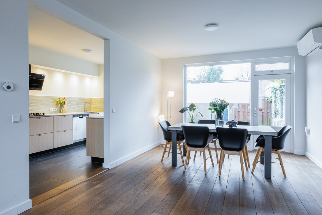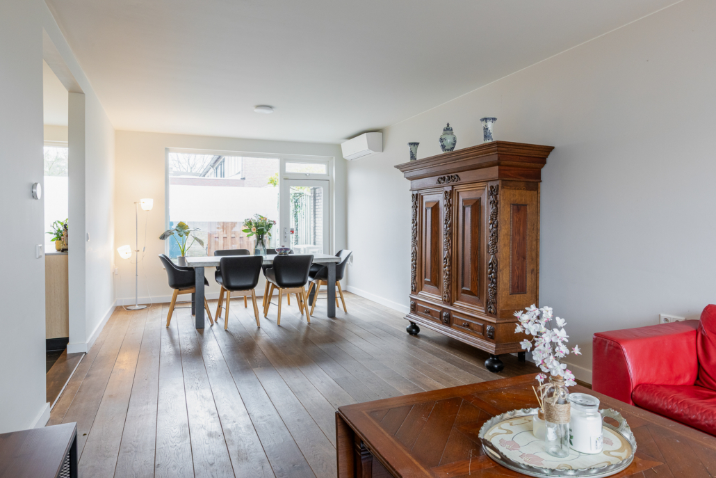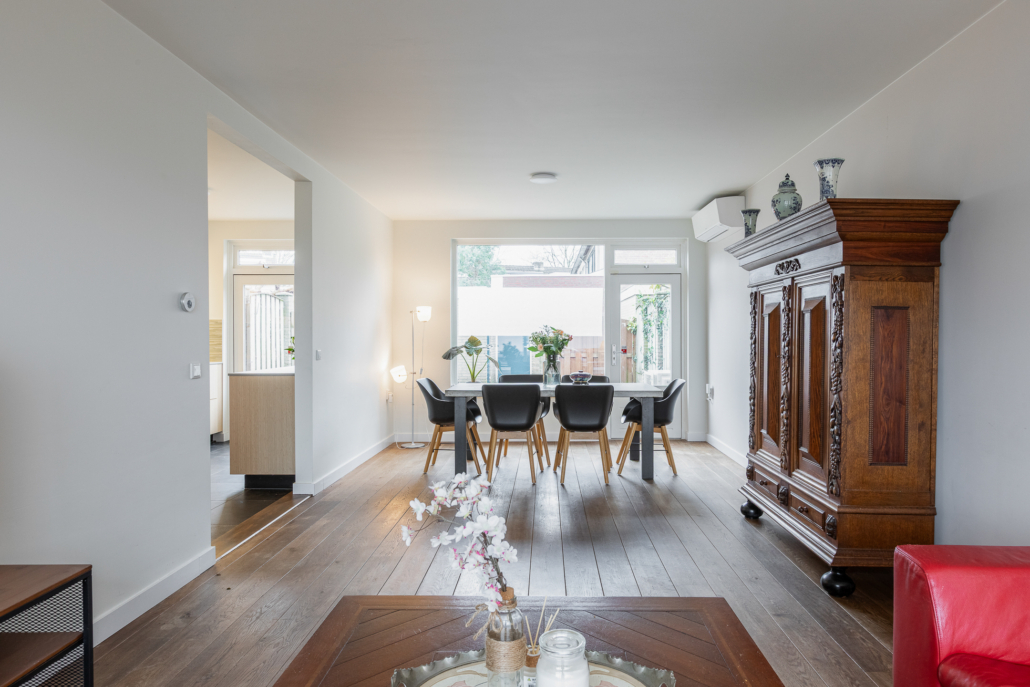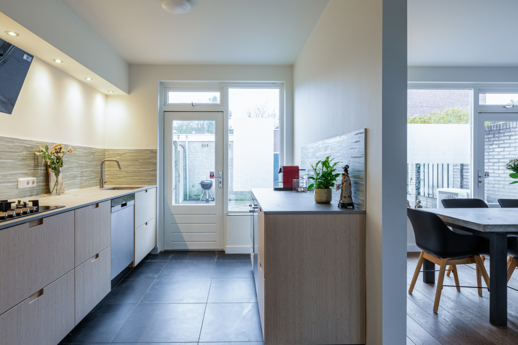 De lichte woonkamer is voorzien van grote raampartijen voor en achter. De stijlvolle open keuken (2024) is ruim van opzet en heeft middels een loopdeur toegang tot de tuin. De keukenopstelling is voorzien van diverse inbouwapparatuur zoals een vaatwasser, spoelbak met kraan, afzuigkap en 5-pits gasfornuis.
