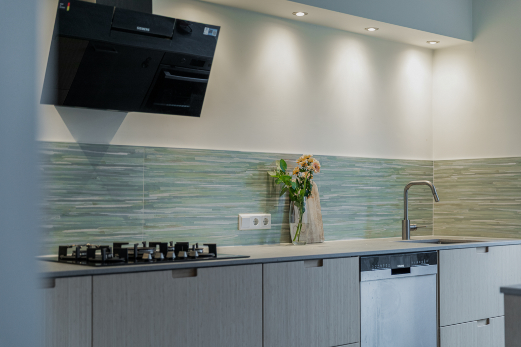 – Moderne inloopkeuken met inbouwapparatuur en aansluiting voor inductie;