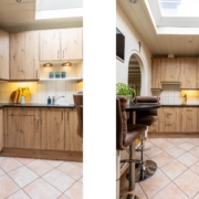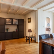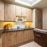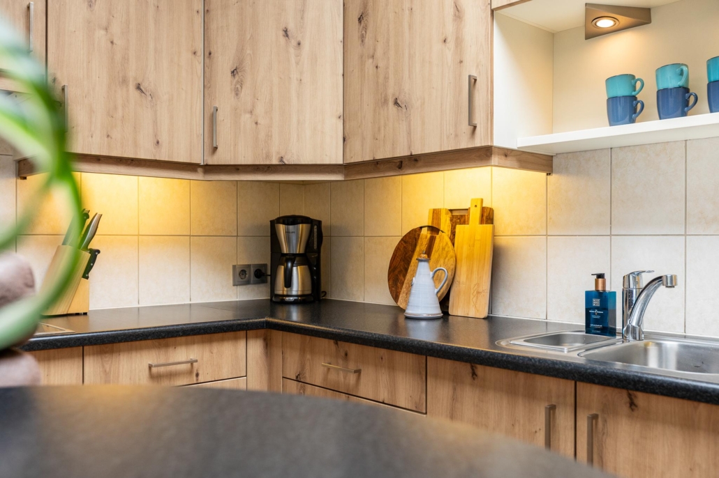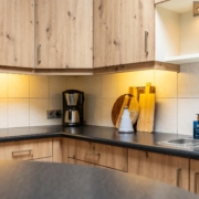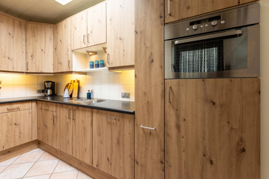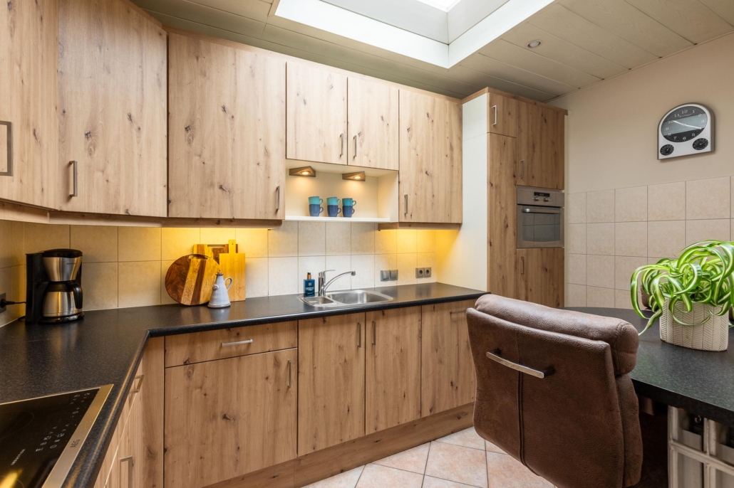 De keuken is half-open en staat in verbinding met de woonkamer. De achterdeur brengt ons naar de serre en de achtertuin. De keuken is zeer verzorgd en voorzien van nieuwe fronten in 2025. De aanwezig inbouwapparatuur bestaat uit inductiekookplaat, afzuigkap, vaatwasser, koelkast en een combi oven/magnetron.