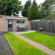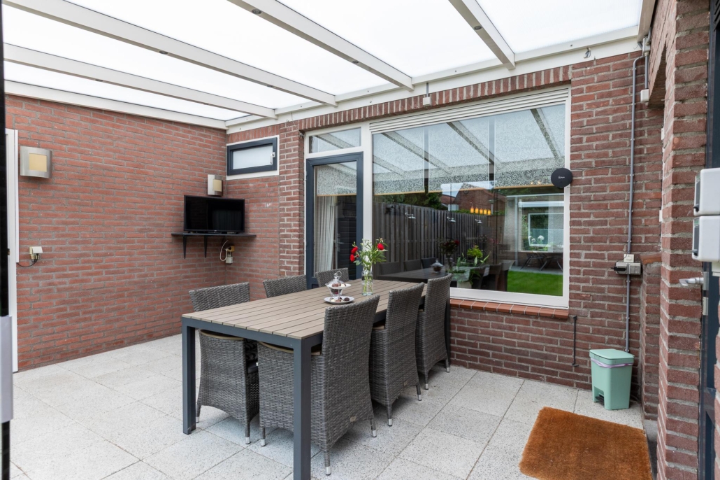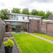 De achtertuin is gelegen op het westen en geniet van veel rust en privacy. De tuin is diep en verzorgd aangelegd met bestrating, gazon en enkele plantenborders. Achter op het perceel is de ruime garage gelegen die voorzien is van elektra en water.