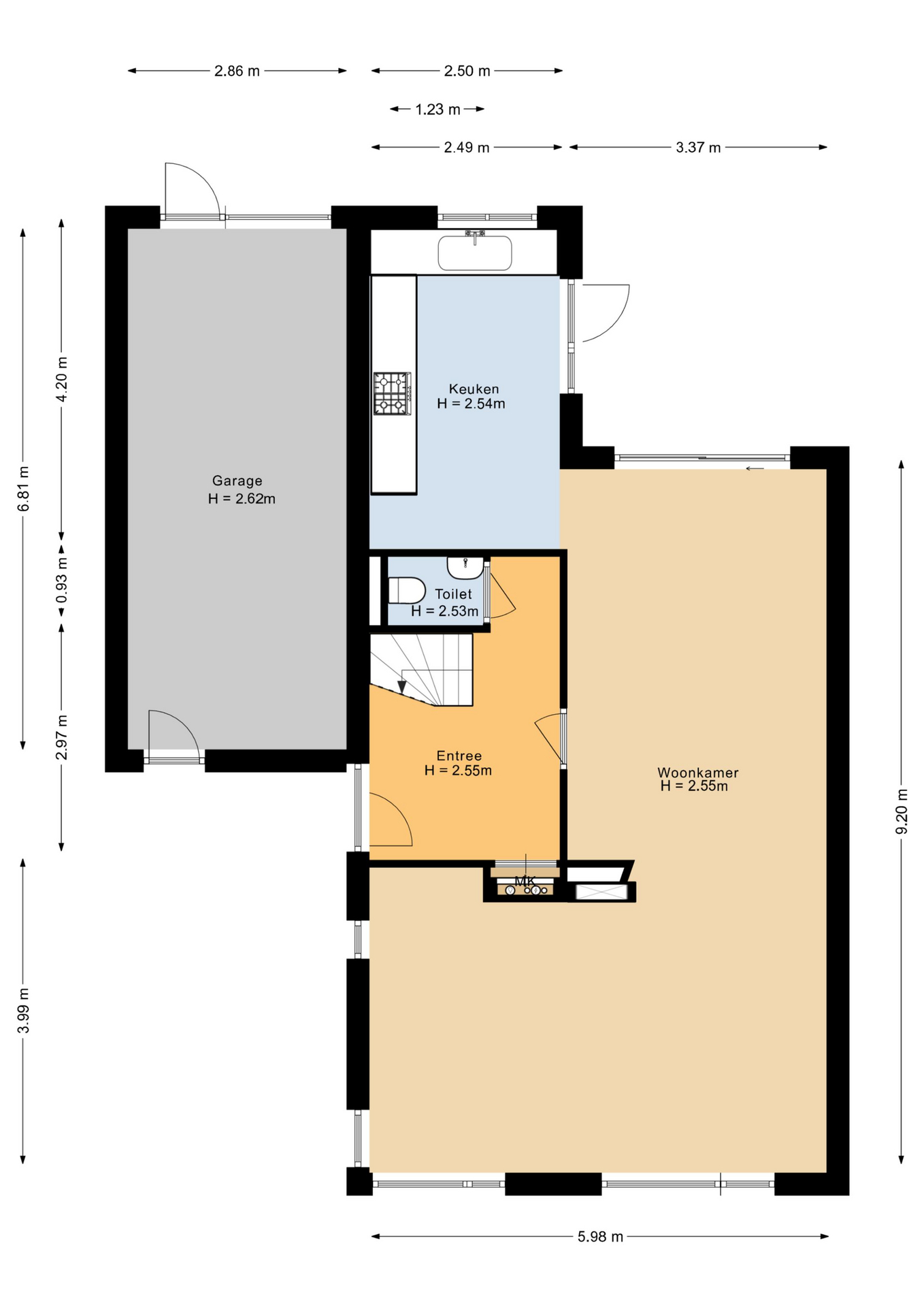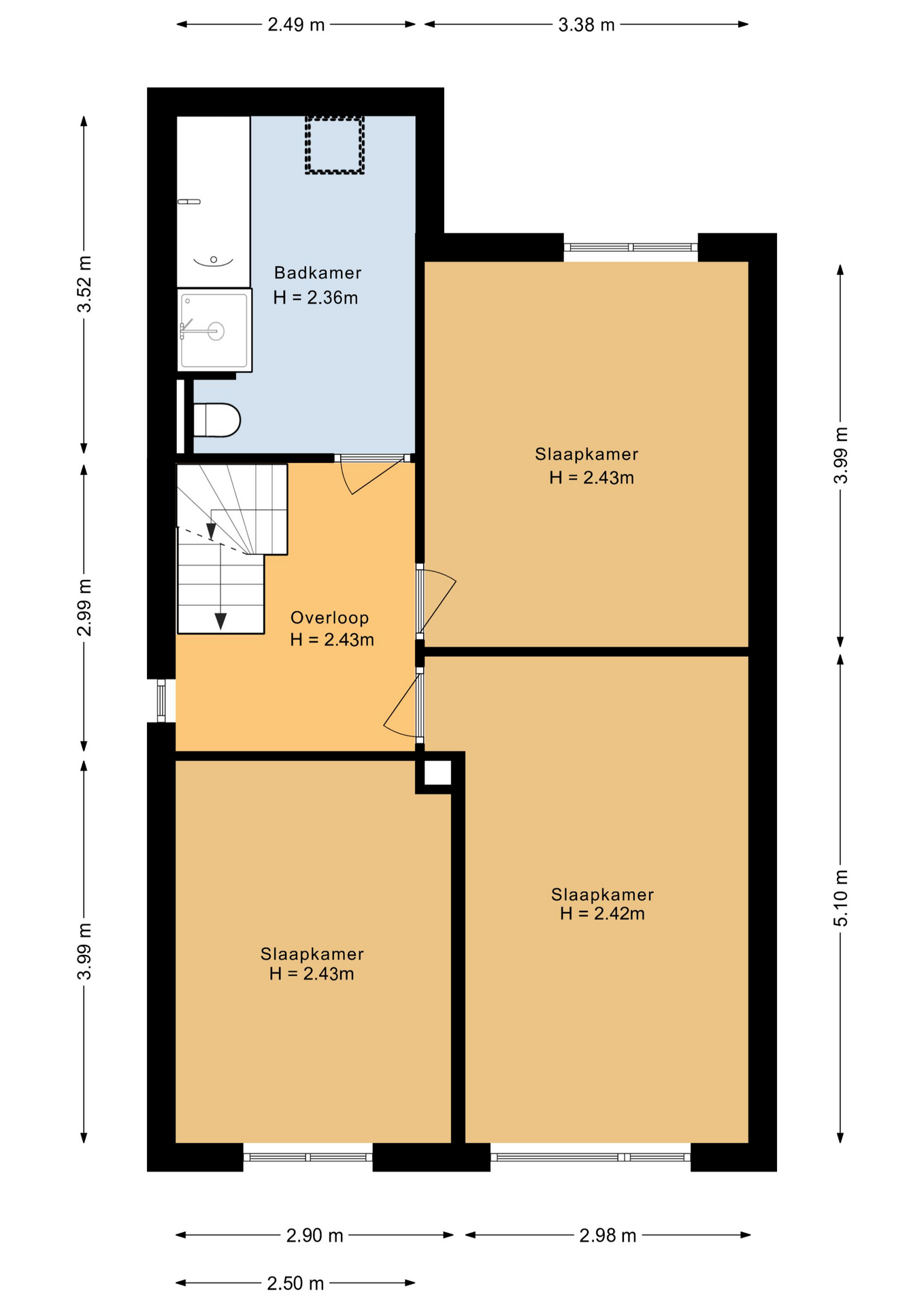 De woning is zorgvuldig professioneel ingemeten. De Meetinstructie is gebaseerd op de NEN2580. De Meetinstructie is bedoeld om een meer eenduidige manier van meten toe te passen voor het geven van een indicatie van de gebruiksoppervlakte. De Meetinstructie sluit verschillen in meetuitkomsten niet volledig uit, door bijvoorbeeld interpretatieverschillen, afrondingen of beperkingen bij het uitvoeren van de meting.