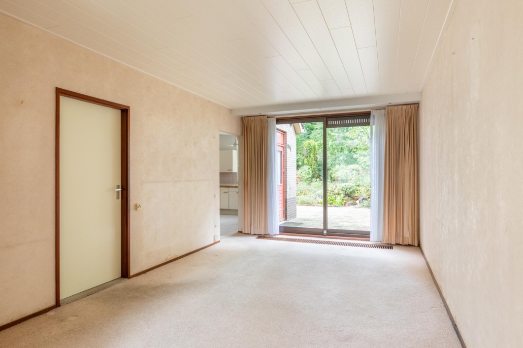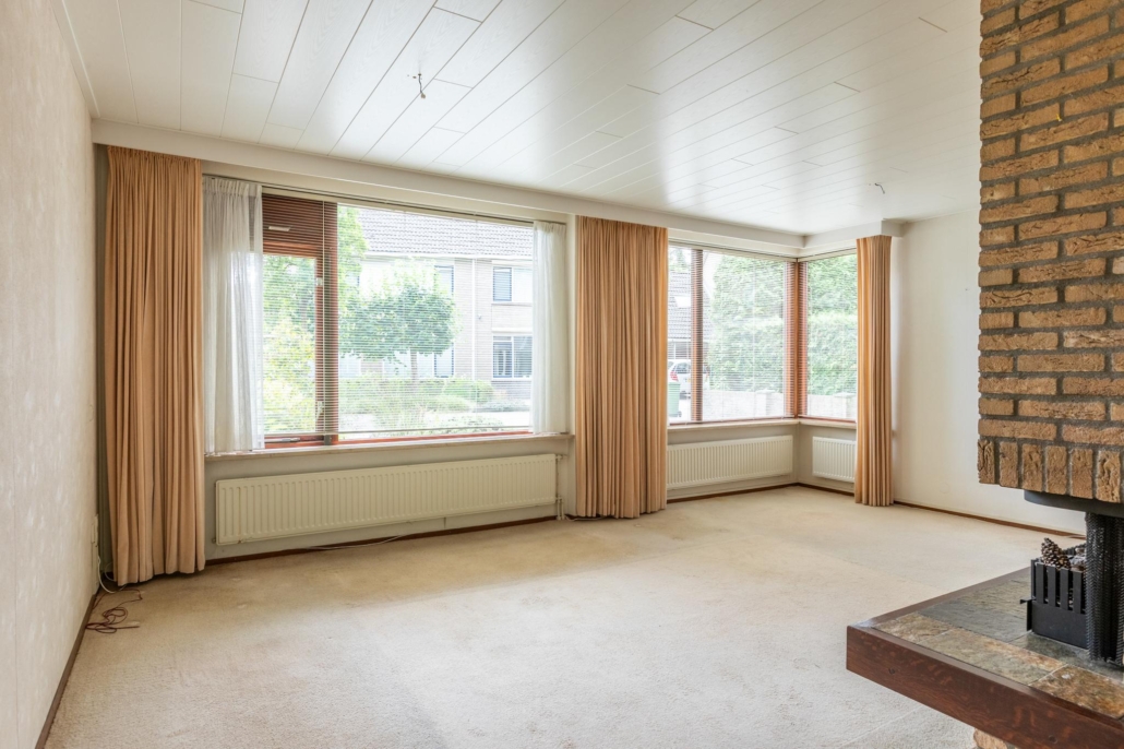 De woonkamer is een echte eyecatcher: groot, licht en speels ingedeeld met een sfeervolle gashaard als centraal punt. Dankzij de vele raampartijen valt het daglicht rijkelijk naar binnen. Het eetgedeelte grenst aan de achtertuin en biedt via de grote kunststof schuifpui een prachtig uitzicht en directe toegang tot het terras.