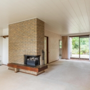 * Grote, lichte woonkamer met sfeervolle gashaard