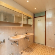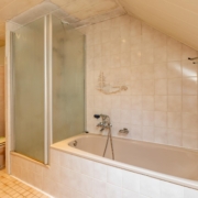 * Badkamer met ligbad, douche, toilet en dubbele wastafel