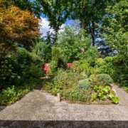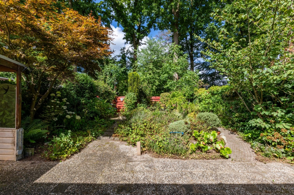 De woning beschikt over een brede, diepe achtertuin op het westen, waardoor je tot laat in de avond van de zon kunt genieten. De tuin biedt volop privacy, is fraai aangelegd en beschikt over een groot terras direct grenzend aan de woning – een ideale plek om te loungen, eten of ontspannen met familie en vrienden. Dankzij de breedte van het perceel is er veel ruimte om te tuinieren, te spelen of simpelweg tot rust te komen.