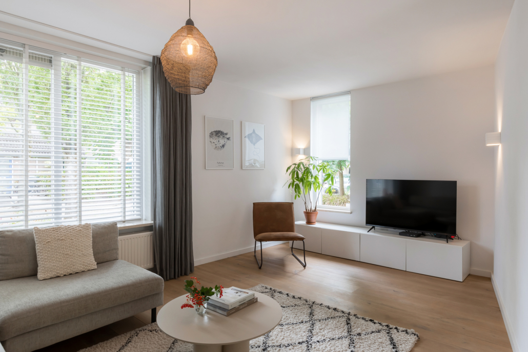 De woonkamer aan de voorzijde is licht en ruim en heeft volop indelingsmogelijkheden, met een extra zijraam voor maximale lichtinval.