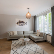 De begane grond is afgewerkt met een stijlvolle houten vloer.