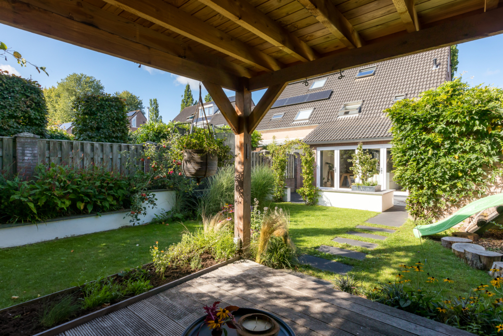– Verzorgde voortuin en privacy biedende achtertuin met overkapping;