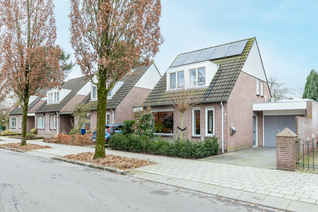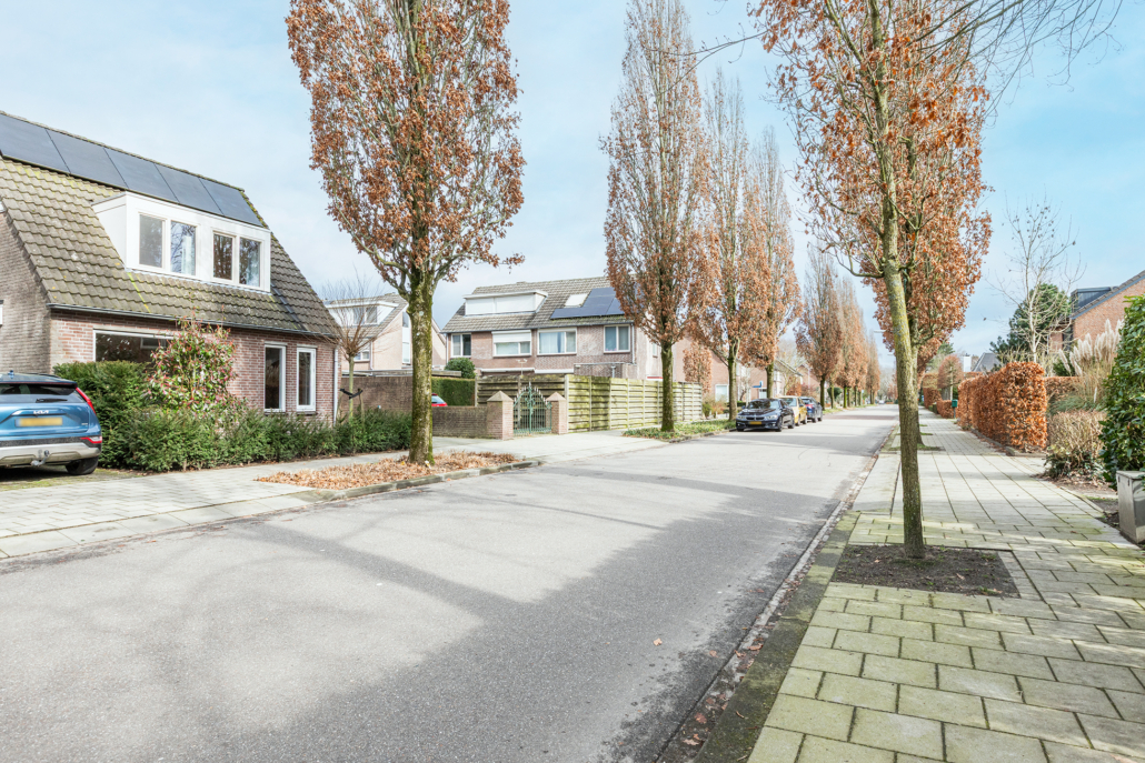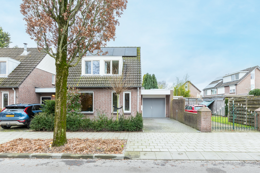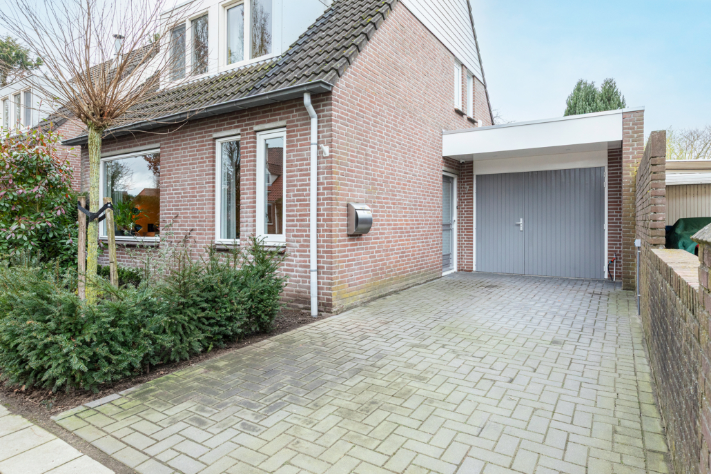 De voortuin is verzorgd aangelegd en voorzien van een druppelslang. De oprit biedt ruimte voor het parkeren van een auto op eigen terrein. Aansluitingen voor een laadpaal zijn aanwezig.
