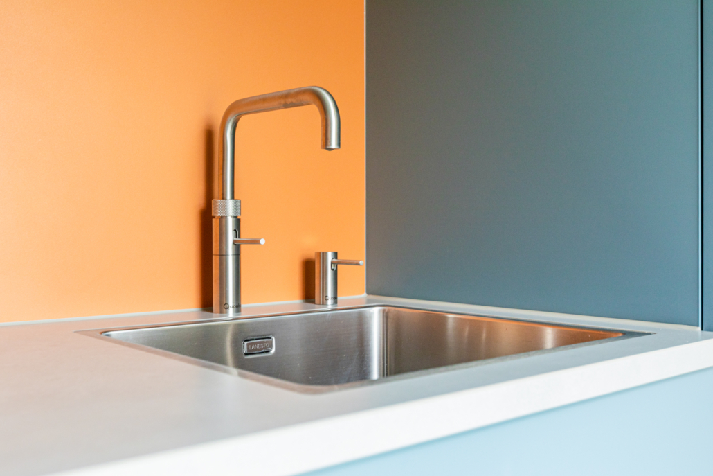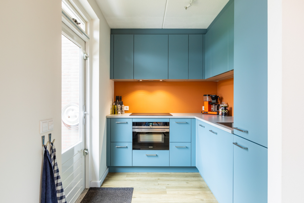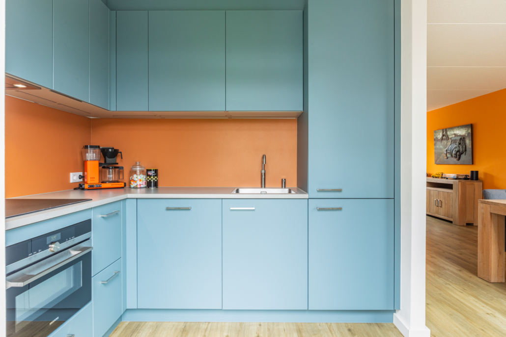 De keuken is vernieuwd in 2024 en is opgesteld in L-vorm. De keuken beschikt over diverse kasten en laden en inbouwapparatuur zoals inductie kookplaat, vlakscherm afzuigkap, koel-/vriescombinatie, combi oven/ magnetron, vaatwasser en Quooker.