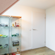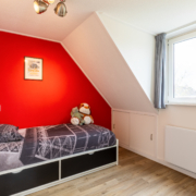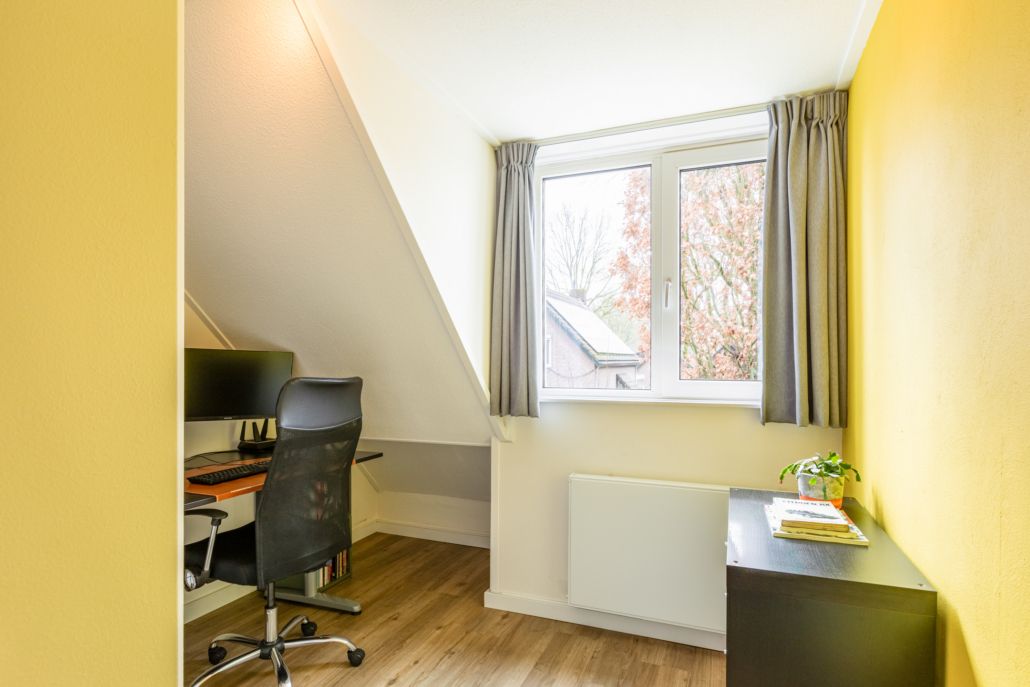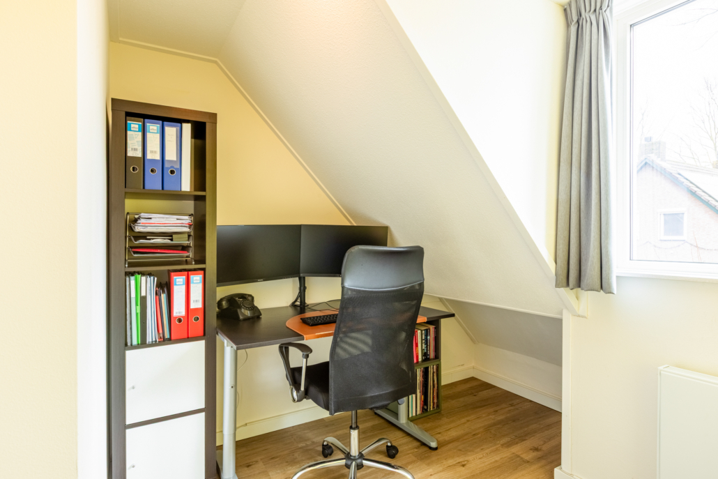 De overloop geeft toegang tot drie slaapkamers, de badkamer en de was-/stookruimte. Alle slaapkamers zijn voorzien van een dakkapel en PVC vloer. De badkamer is hedendaags betegeld en zeer verzorgd. De ruimte is voorzien van een inloopdouche, toilet en wastafel met meubel.