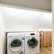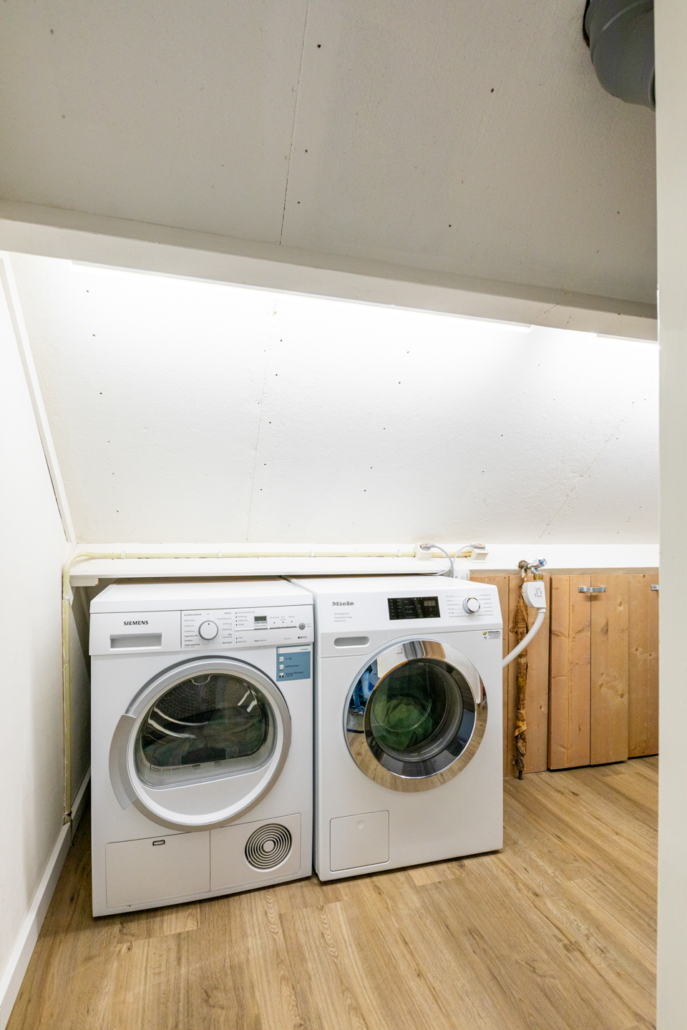 De stookruimte is praktisch ingedeeld met aansluitingen voor was-apparatuur, opstelling c.v.-combiketel (2020)