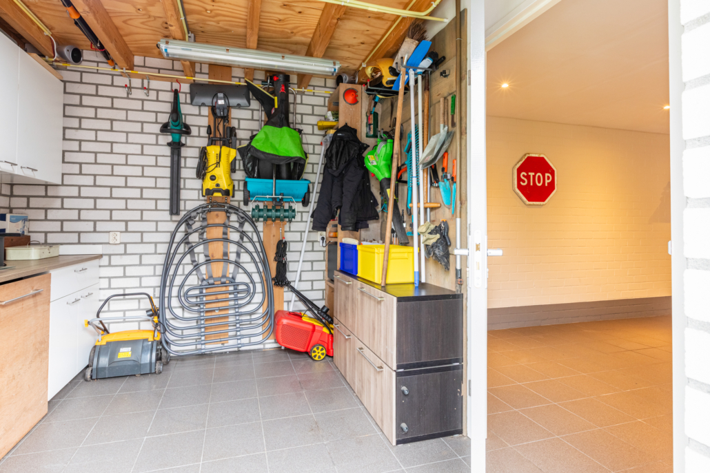 Direct aan de woning is de garage gebouwd. Deze garage is in 2017 verlengd en volledig verbouwd. In totaal heeft deze ruimte een oppervlakte van ruim 26 m2. De ruimte is netjes afgewerkt en voorzien van een tegelvloer en isolatie. Door de vele aanwezige aansluitingen (verwarming en elektra) is deze ruimte vrij eenvoudig om te turnen tot extra woonruimte. Buitenom bereikbaar of toch liever een doorgang vanuit de woning? Mogelijkheden zijn er voldoende. Tevens bevindt zich hier de omvormer t.b.v. zonnepanelen (14 stuks).