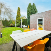 De tuin is verrassend diep en zeer verzorgd aangelegd. Als de woning uitgebouwd zou worden dan blijft er nog een aangename tuin over waarin je geniet van volledige privacy doordat er geen hoge bebouwing omheen aanwezig is.