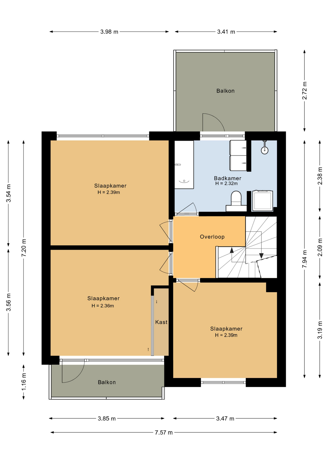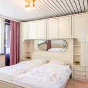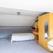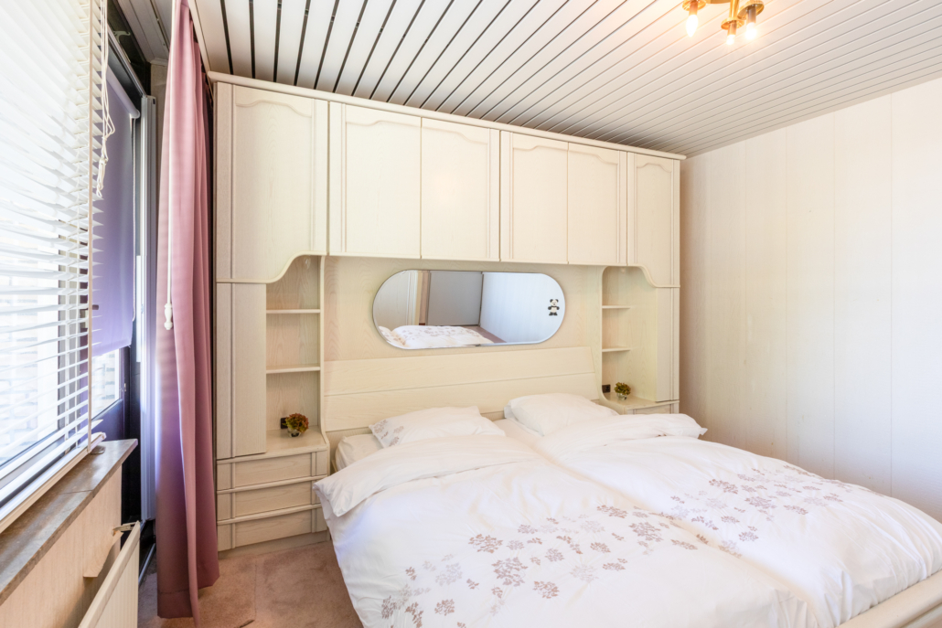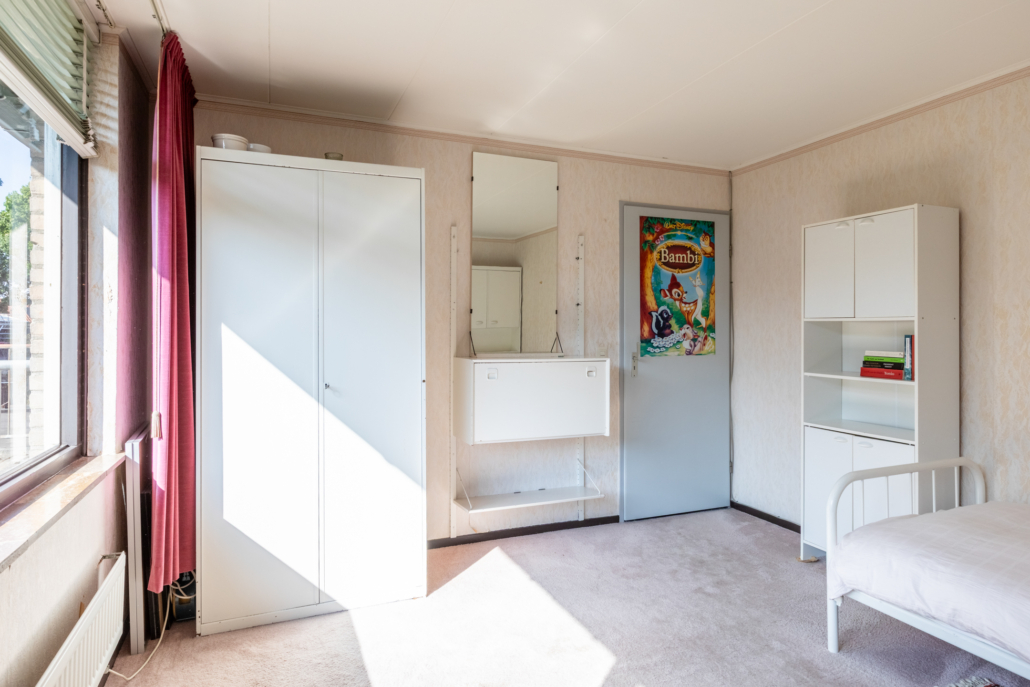 Er bevinden zich twee slaapkamers aan de voorzijde van de woning waarvan één met balkon. De derde slaapkamer en de badkamer bevinden zich aan de achterzijde van de woning.