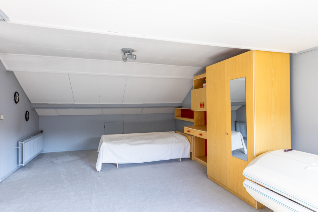 De tweede verdieping biedt een ruime voorzolder met cv-installatie en een vierde slaapkamer met grote dakkapel, extra bergruimte en een wastafel.