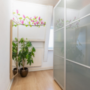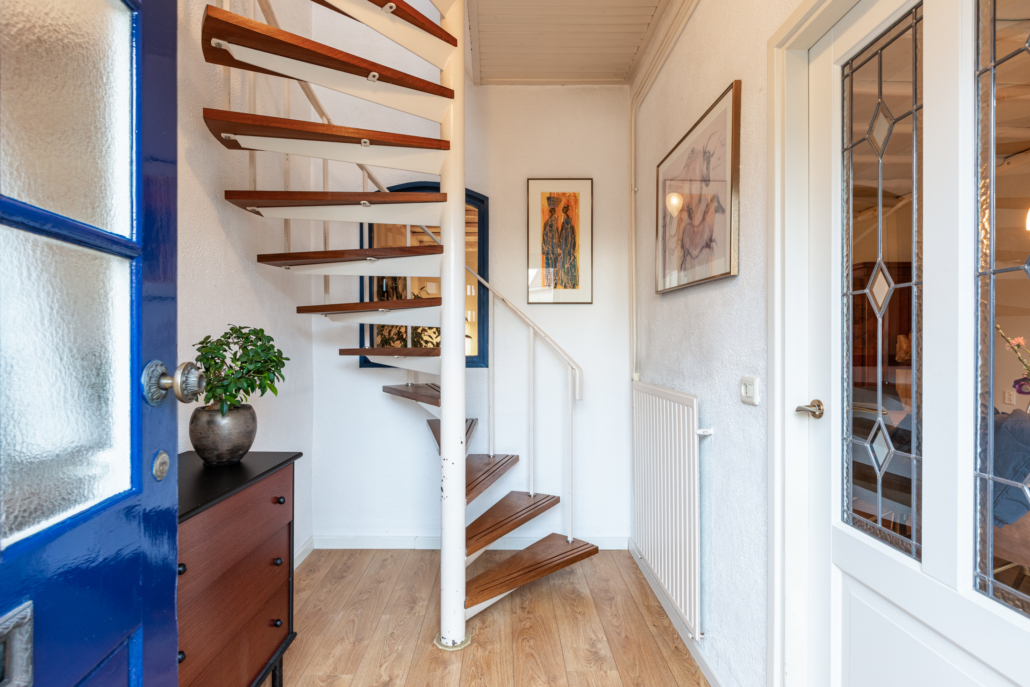 We lopen door een mooi verzorgde voortuin naar de entree van deze woning. De lichte hal biedt toegang tot de woonkamer, de trapopgang naar de 1e verdieping en de meterkast.