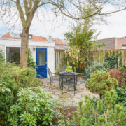 De achtertuin is verzorgd aangelegd en heeft volwassen beplanting, een brede achterom met zijpoort en zowel een berging alsmede een extra (afgesloten) overkapping aan de achterzijde. De overkapping heeft een deur, elektra en is super praktisch voor tuingereedschap, afvalcontainers en verdere opslag. De berging is eveneens voorzien elektra.