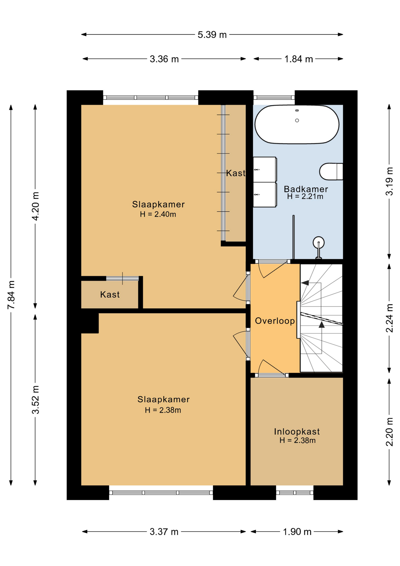 De woning is zorgvuldig professioneel ingemeten. De Meetinstructie is gebaseerd op de NEN2580. De Meetinstructie is bedoeld om een meer eenduidige manier van meten toe te passen voor het geven van een indicatie van de gebruiksoppervlakte. De Meetinstructie sluit verschillen in meetuitkomsten niet volledig uit, door bijvoorbeeld interpretatieverschillen, afrondingen of beperkingen bij het uitvoeren van de meting.