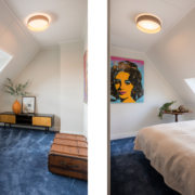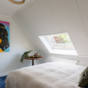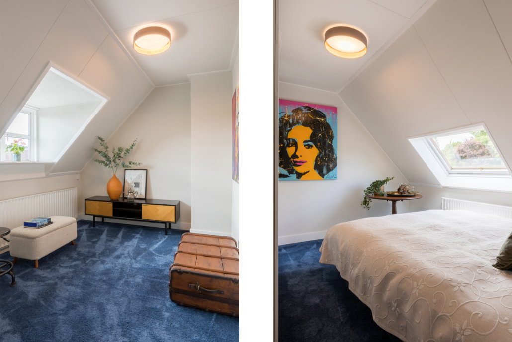 De slaapkamer aan de voorzijde heeft een dakkapel met kunststof kozijnen. Aan de achterzijde heeft de slaapkamer een Velux dakraam.