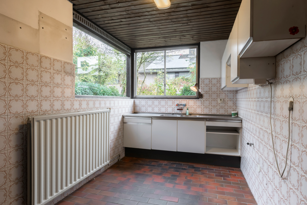 Aansluitend aan de keuken ligt de praktische bijkeuken met aansluiting voor de wasmachine en zowel toegang tot de achtertuin als de oprit aan de voorzijde.
