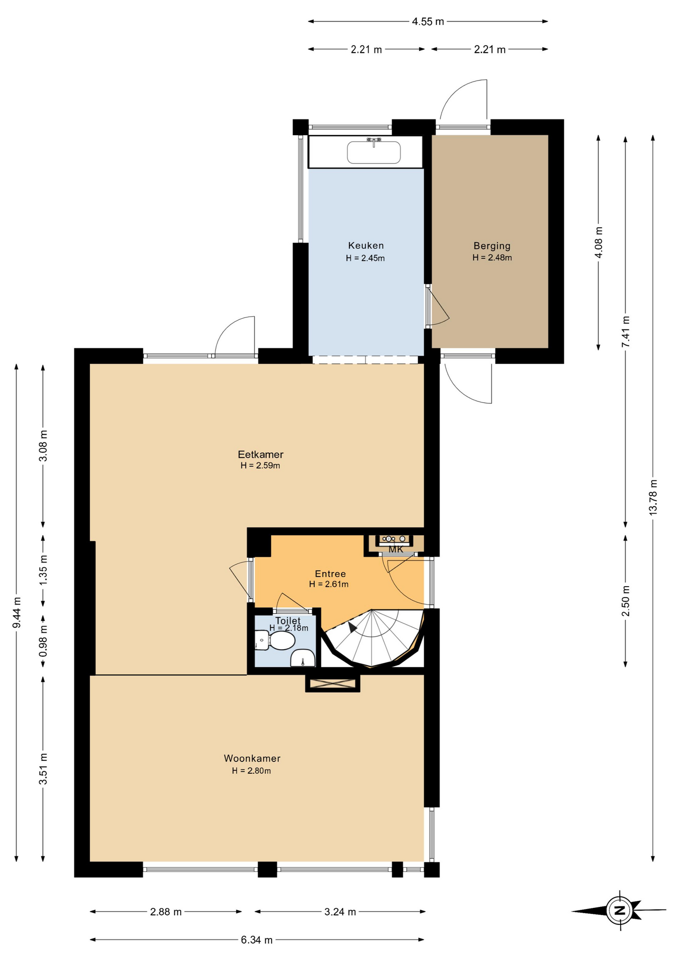 De woning is zorgvuldig professioneel ingemeten. De Meetinstructie is gebaseerd op de NEN2580. De Meetinstructie is bedoeld om een meer eenduidige manier van meten toe te passen voor het geven van een indicatie van de gebruiksoppervlakte. De Meetinstructie sluit verschillen in meetuitkomsten niet volledig uit, door bijvoorbeeld interpretatieverschillen, afrondingen of beperkingen bij het uitvoeren van de meting.