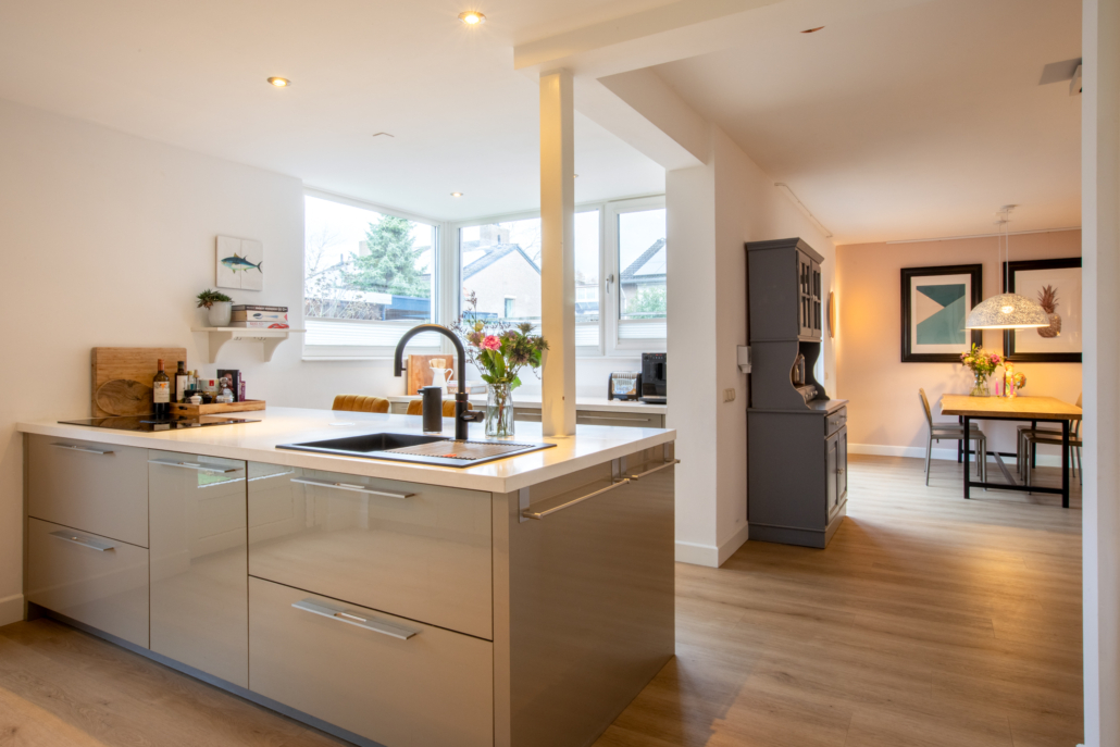 het grote zitgedeelte aan de voorzijde, speelse doorloop, ruime eetgedeelte of om de hoek naar de droom leefkeuken?