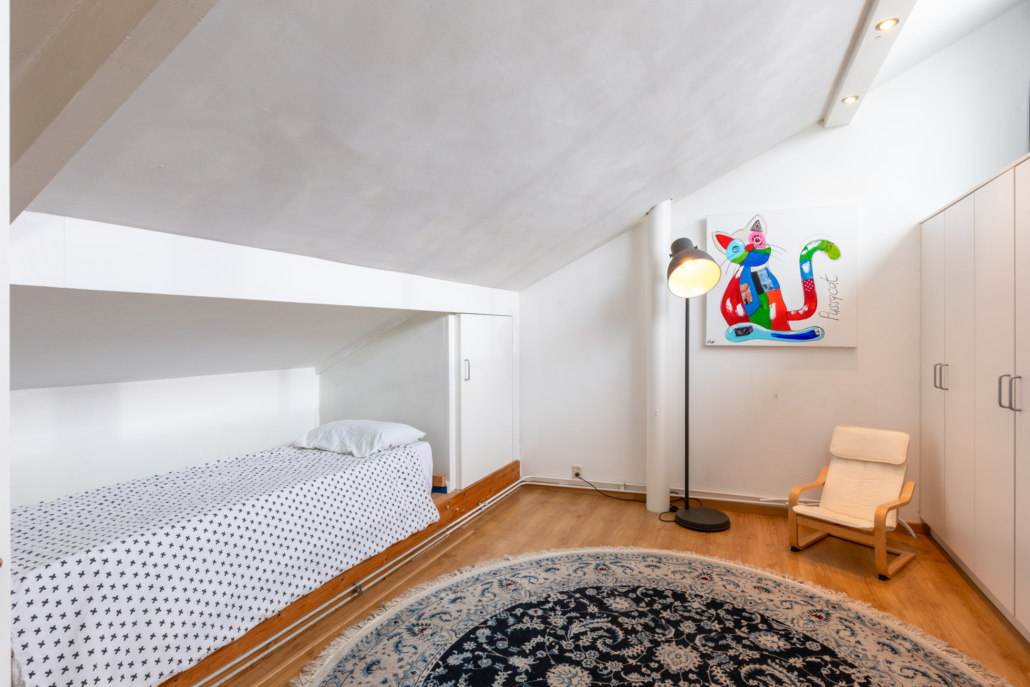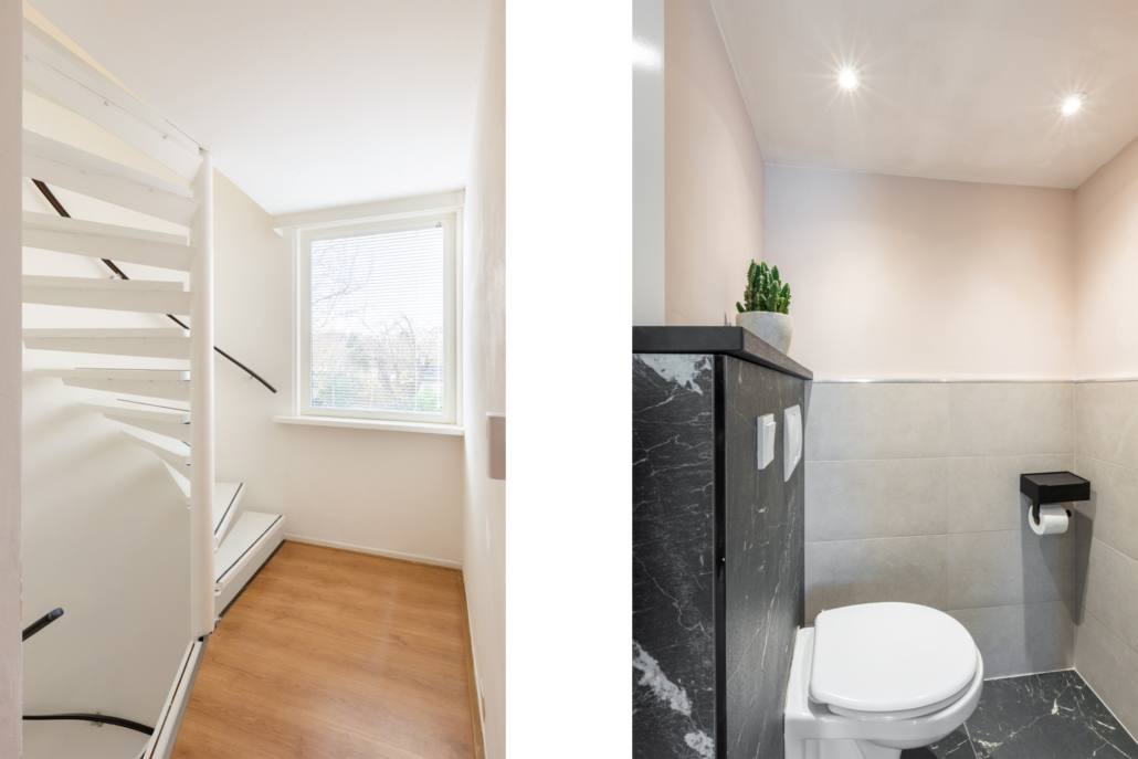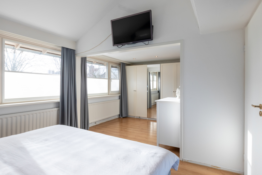 En als bonus ligt op deze verdieping een leuke en grote slaapkamer met volop ramen, een slaapnis en kasten met veel bergruimte onder de schuine kanten.