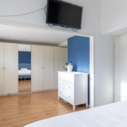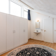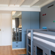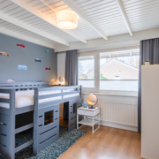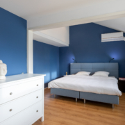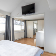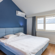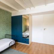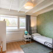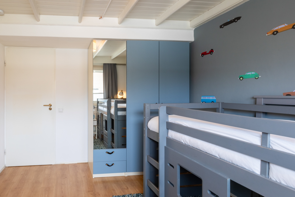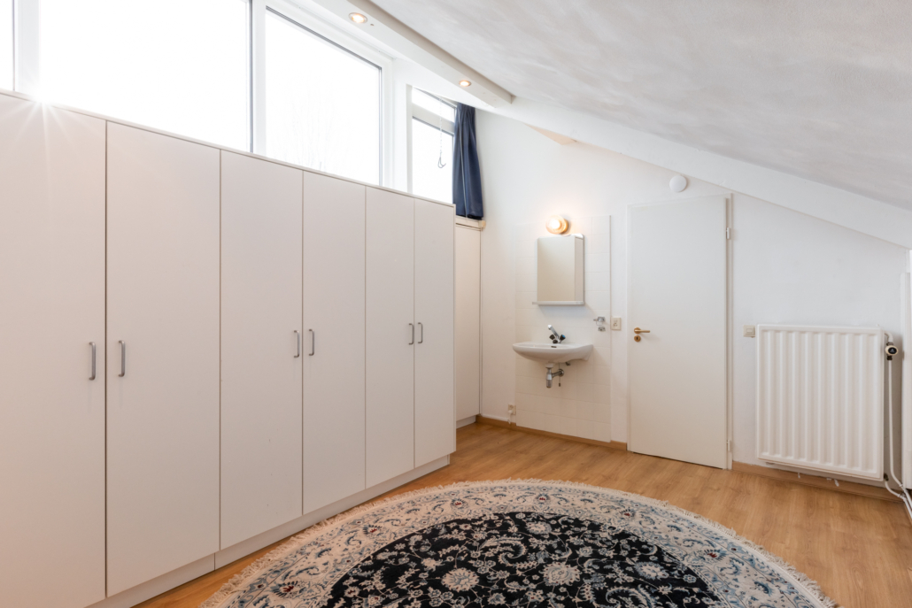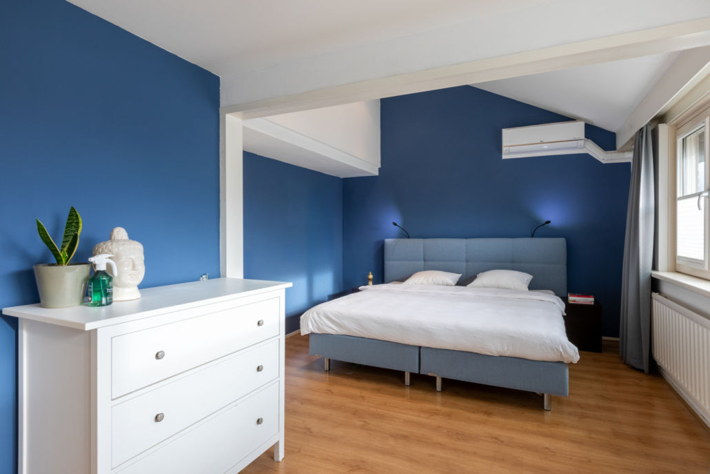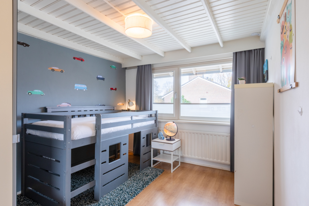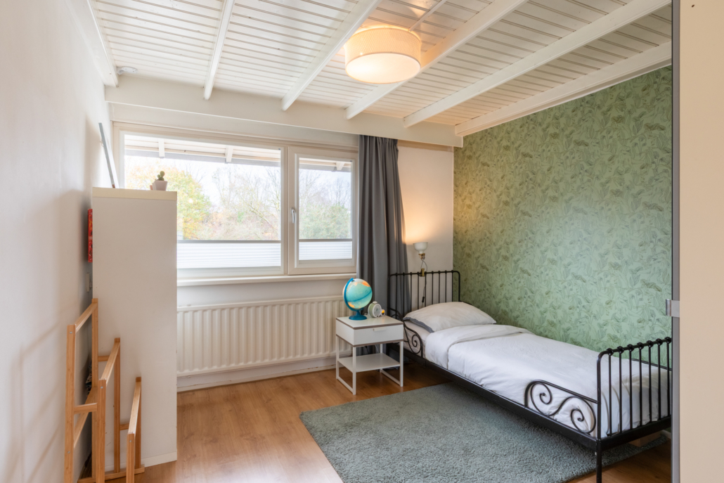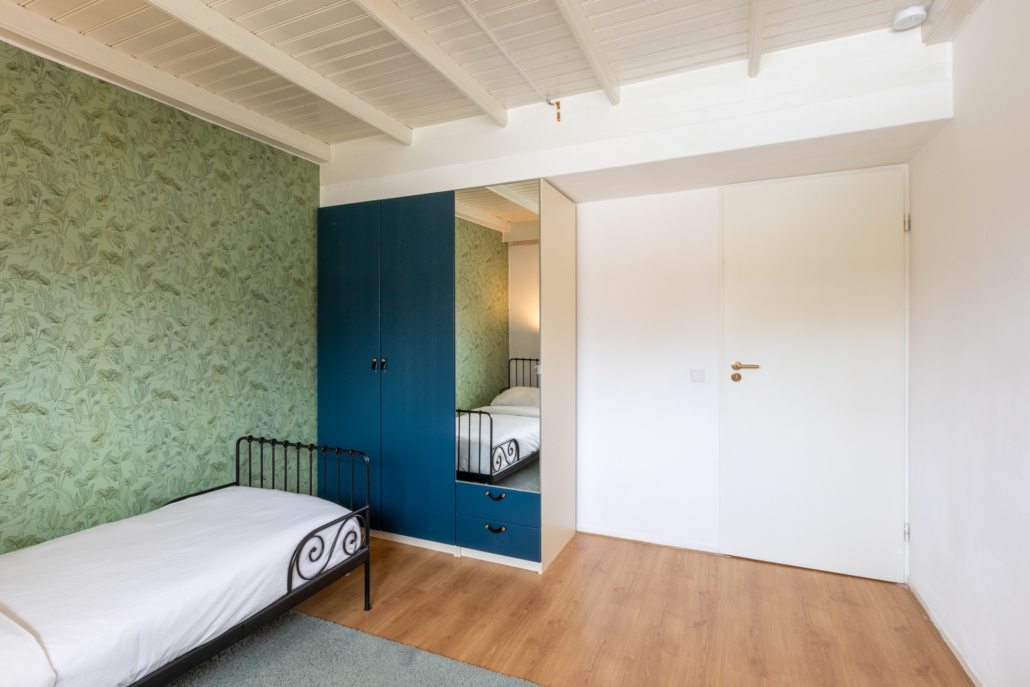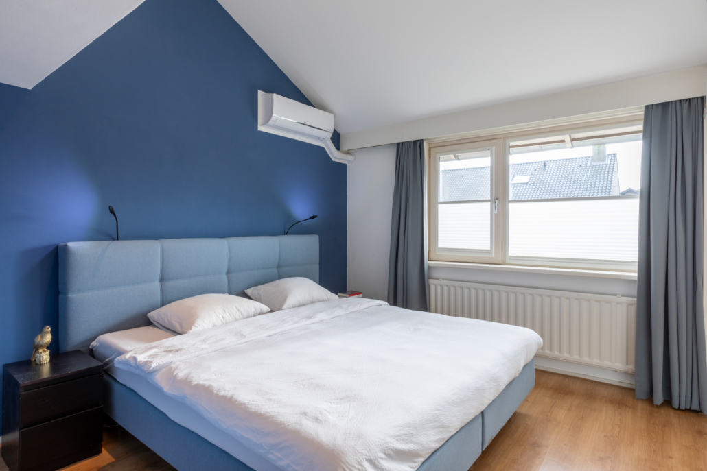 Aan de voorzijde ligt de grootste slaapkamer die doorloopt over de volle breedte van de woning. Hierdoor ontstaat een speelse indeling met volop ruimte voor een walk-in-closet. Aan de achterzijde liggen de overige twee slaapkamers met beide fijne raampartijen.