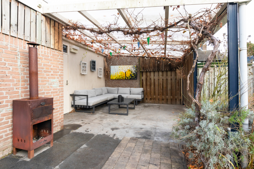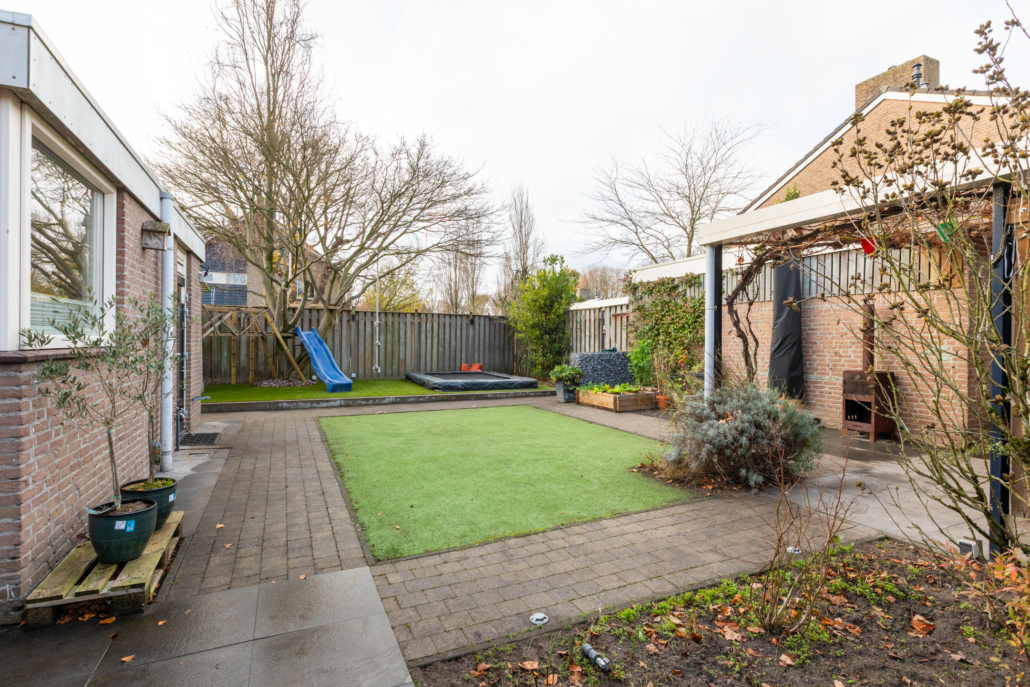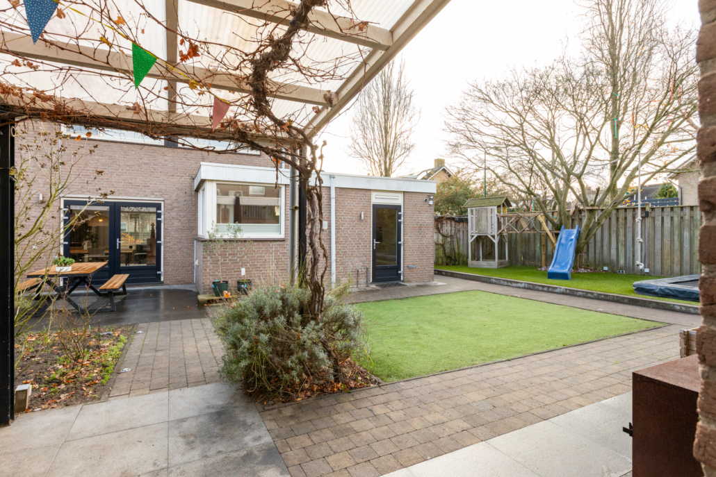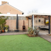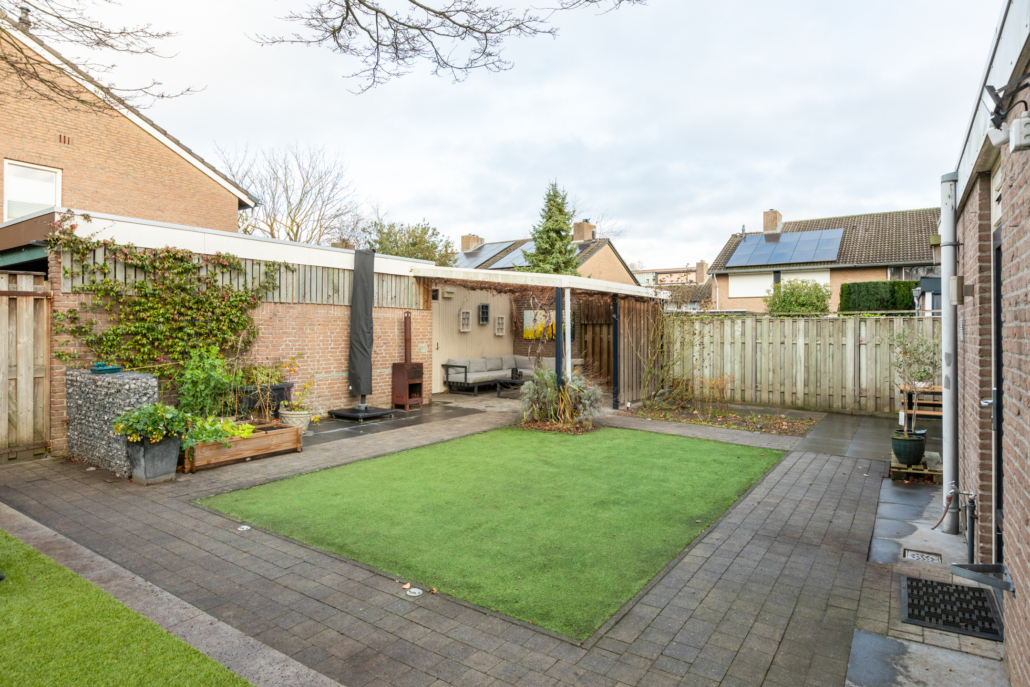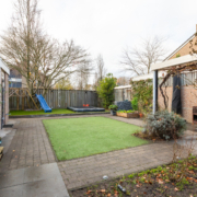 De achtertuin is onderhoudsvrij en verzorgd ingericht! Tegen de woning ligt een groot terras voor de heerlijke zomeravonden. De tuin is voorzien van kunstgras, diverse plantenborders en volwassen bomen. De stenen berging is praktisch voor alle fietsen en tuingereedschap.
