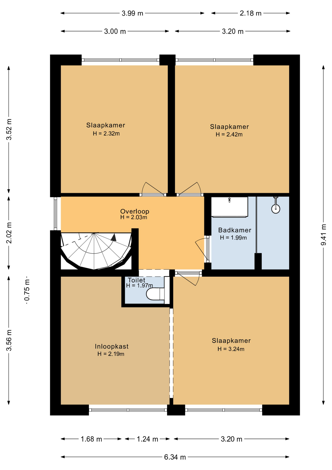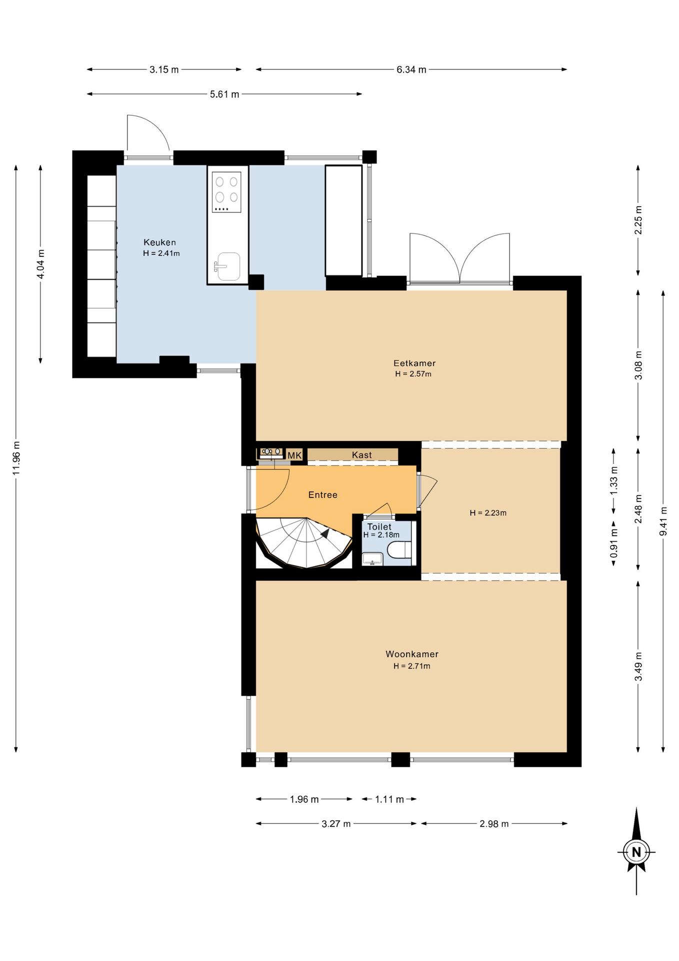 De woning is zorgvuldig professioneel ingemeten. De Meetinstructie is gebaseerd op de NEN2580. De Meetinstructie is bedoeld om een meer eenduidige manier van meten toe te passen voor het geven van een indicatie van de gebruiksoppervlakte. De Meetinstructie sluit verschillen in meetuitkomsten niet volledig uit, door bijvoorbeeld interpretatieverschillen, afrondingen of beperkingen bij het uitvoeren van de meting.