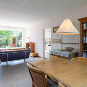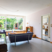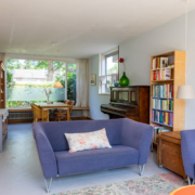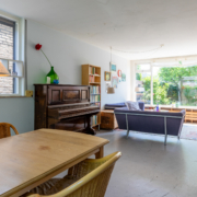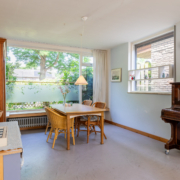 Via de keuken stap je de lichte en verrassend ruime woonkamer in. Dankzij grote ramen aan de voor-, achter- én zijkant stroomt het daglicht hier rijkelijk naar binnen. Aan de voorkant kijk je uit op een groen speelpleintje – ideaal voor gezinnen met jonge kinderen. Aan de achterzijde grenst de woonkamer aan de zonnige tuin.