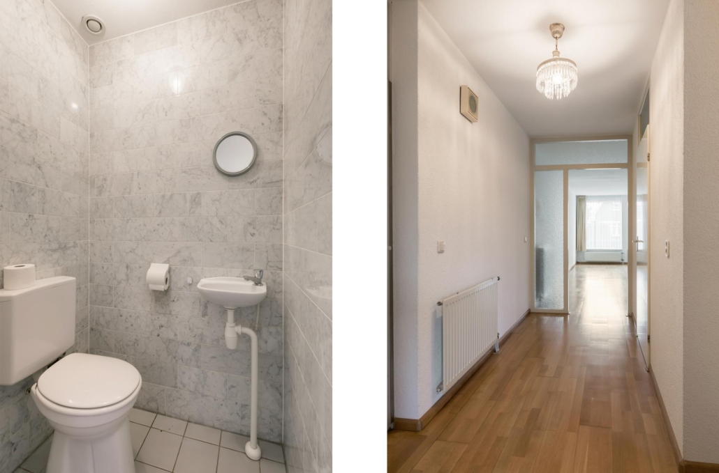 Daarnaast is er een aparte toiletruimte met fonteintje.
