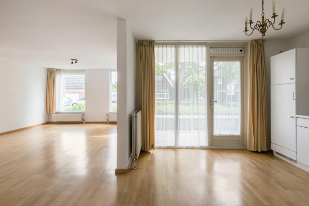 Bij binnenkomst valt direct de ruime hal op, die toegang biedt tot alle vertrekken. De gezellige woonkamer heeft twee grote ramen aan de voorzijde én een hoog zijraam, waardoor het heerlijk licht is. Hier is volop plek voor een fijne zithoek en een eettafel.