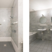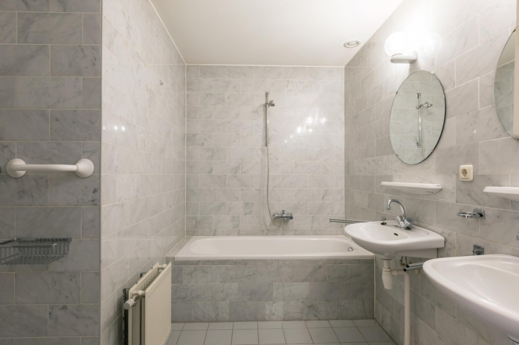 De royale badkamer beschikt over twee wastafels, een ruime inloopdouche én een ligbad.