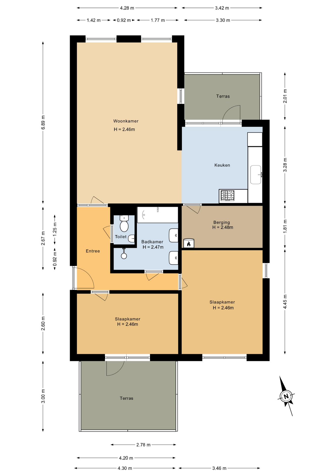 De woning is zorgvuldig professioneel ingemeten. De Meetinstructie is gebaseerd op de NEN2580. De Meetinstructie is bedoeld om een meer eenduidige manier van meten toe te passen voor het geven van een indicatie van de gebruiksoppervlakte. De Meetinstructie sluit verschillen in meetuitkomsten niet volledig uit, door bijvoorbeeld interpretatieverschillen, afrondingen of beperkingen bij het uitvoeren van de meting.