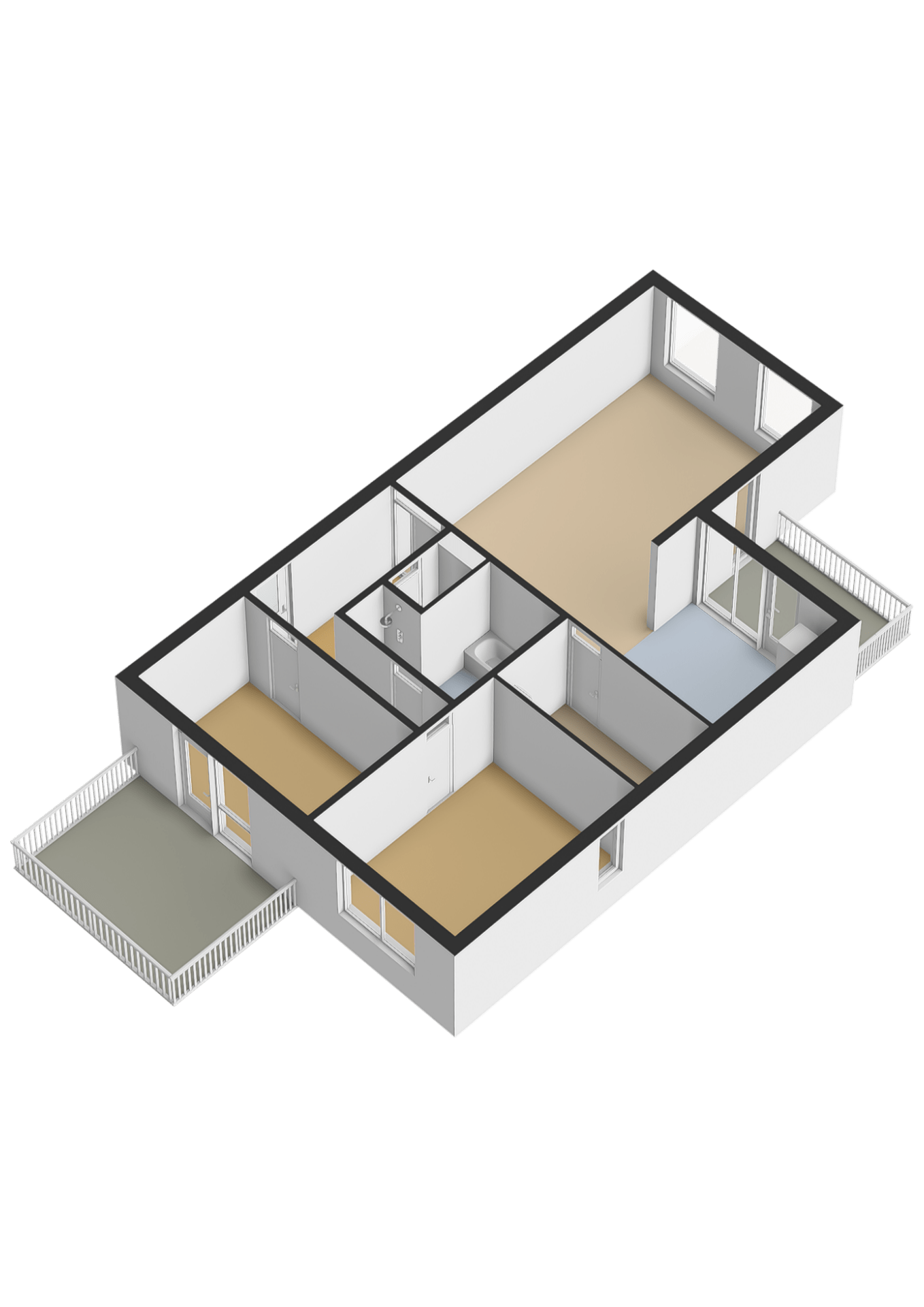 Aan de achterzijde van het appartement vindt u twee ruime slaapkamers. Eén daarvan geeft toegang tot het tweede, grote terras op het zuiden – deels overdekt en heerlijk zonnig.